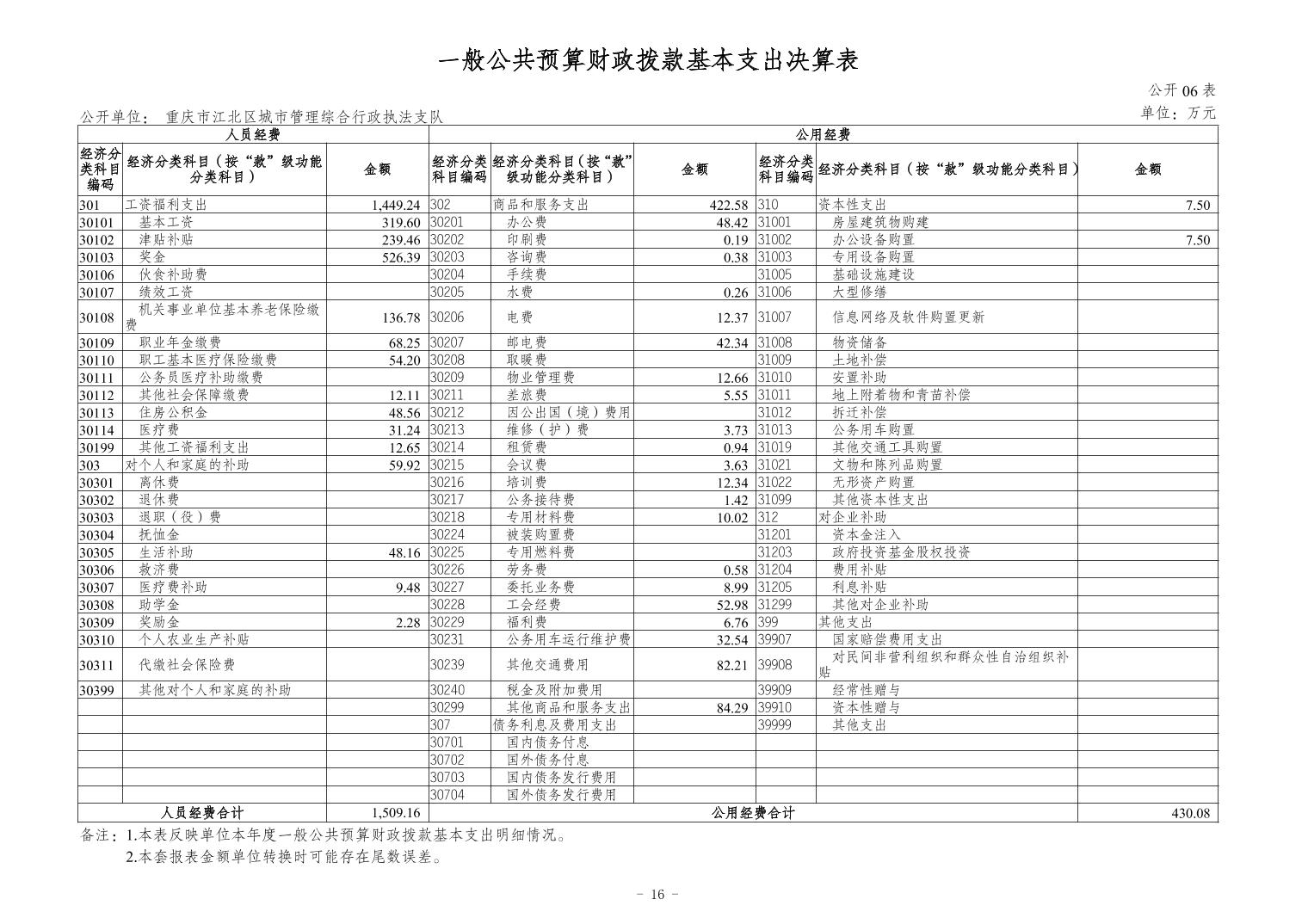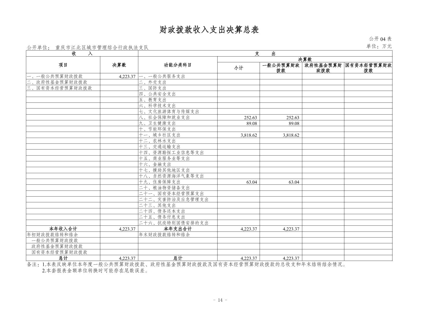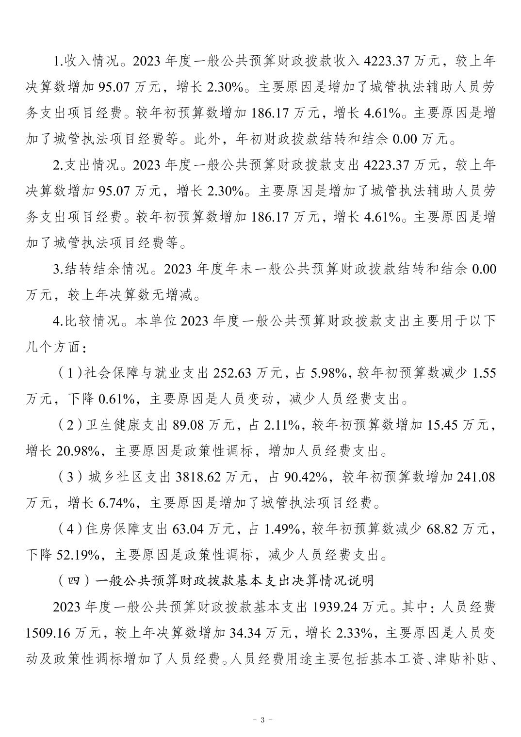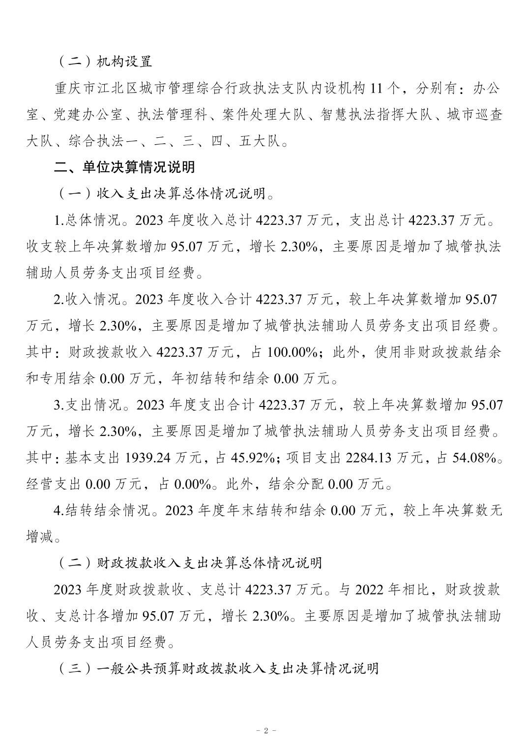 重慶市江北區城市管理綜合行政執法支隊2023 年度決算公開說明