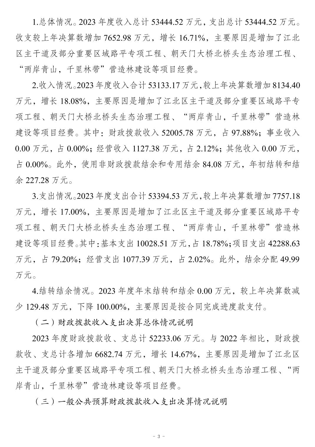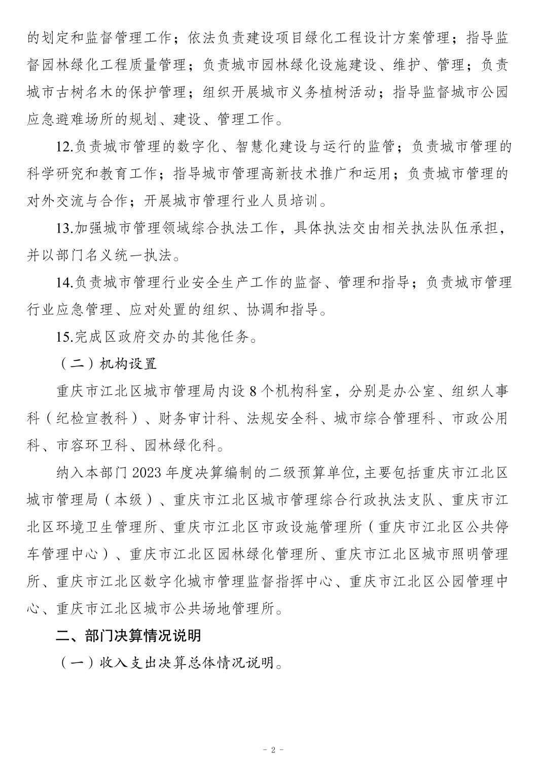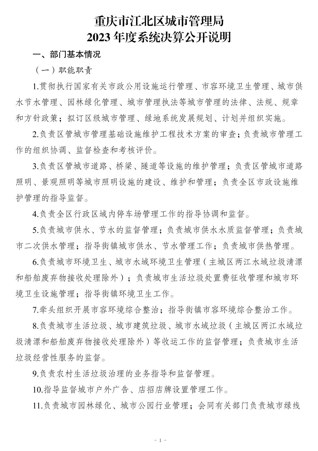 重慶市江北區(qū)城市管理局2023 年度系統(tǒng)決算公開說明