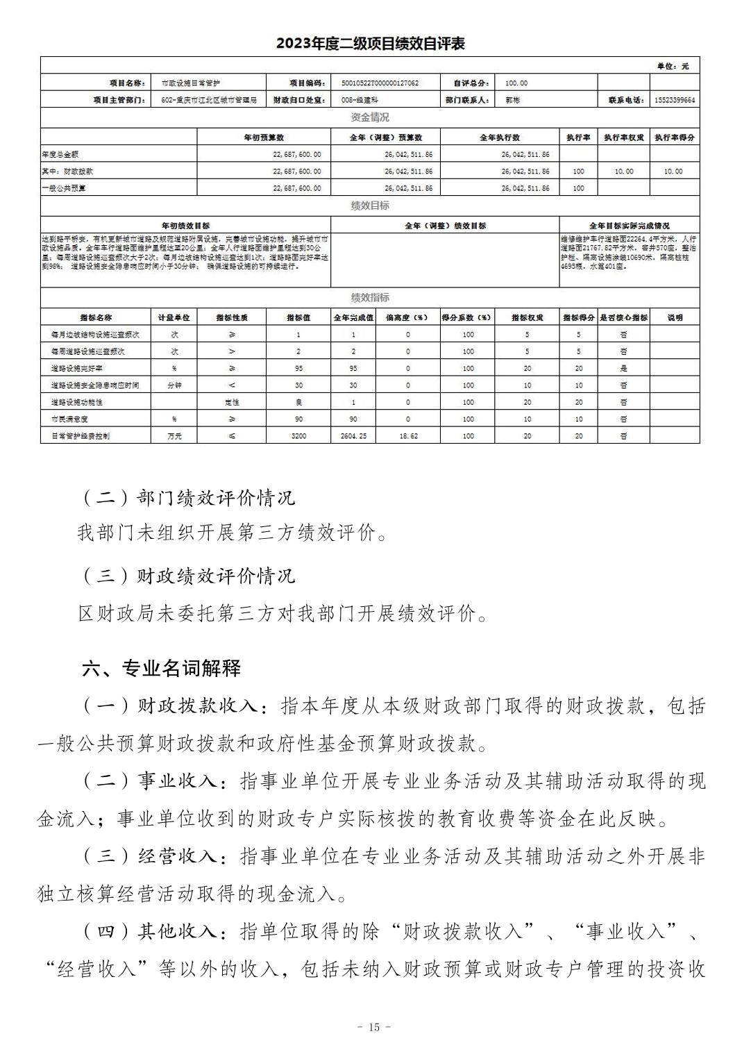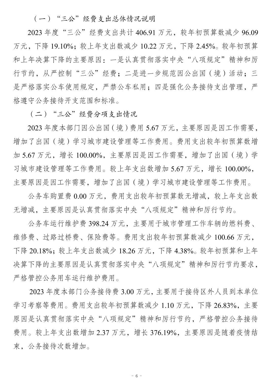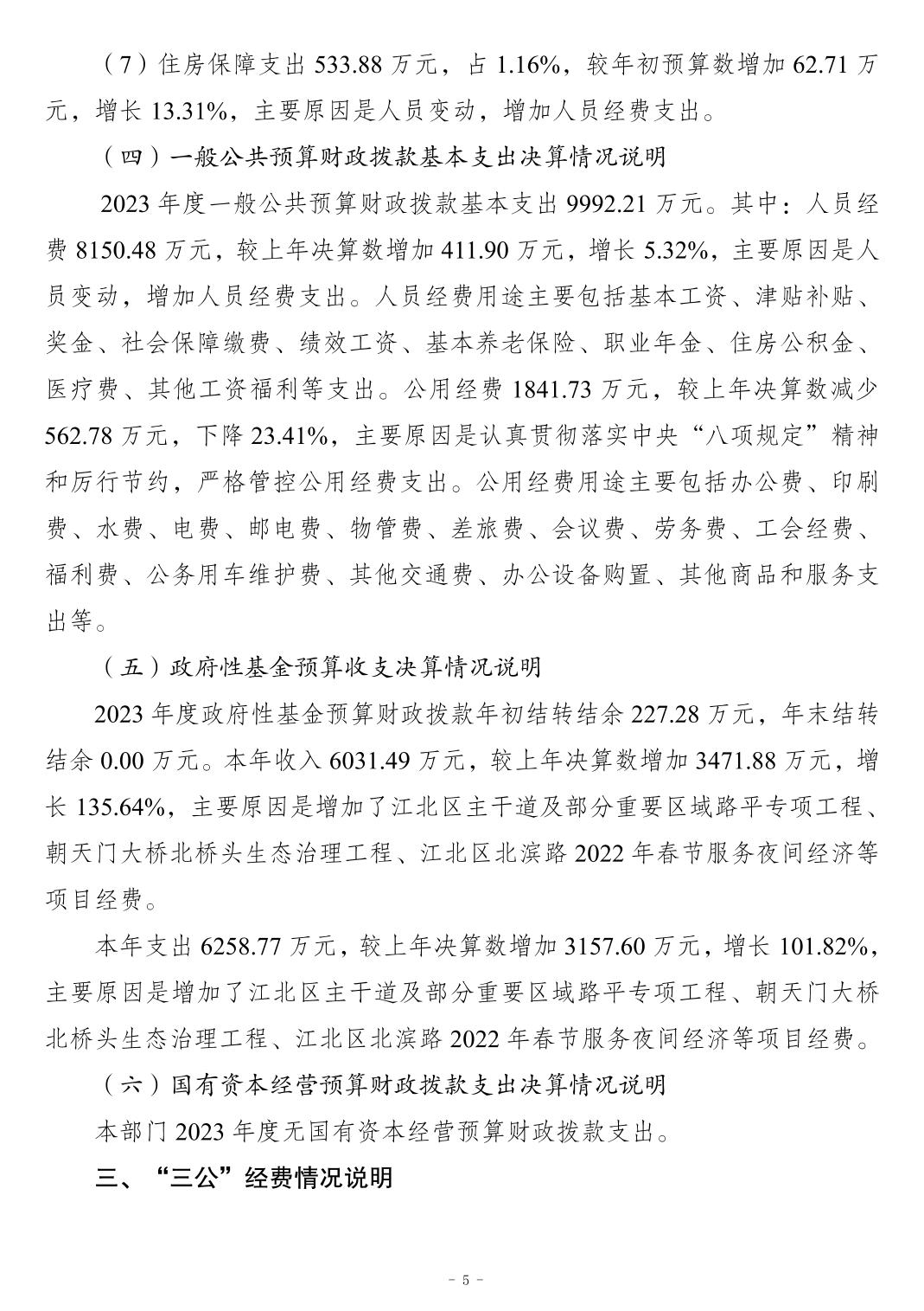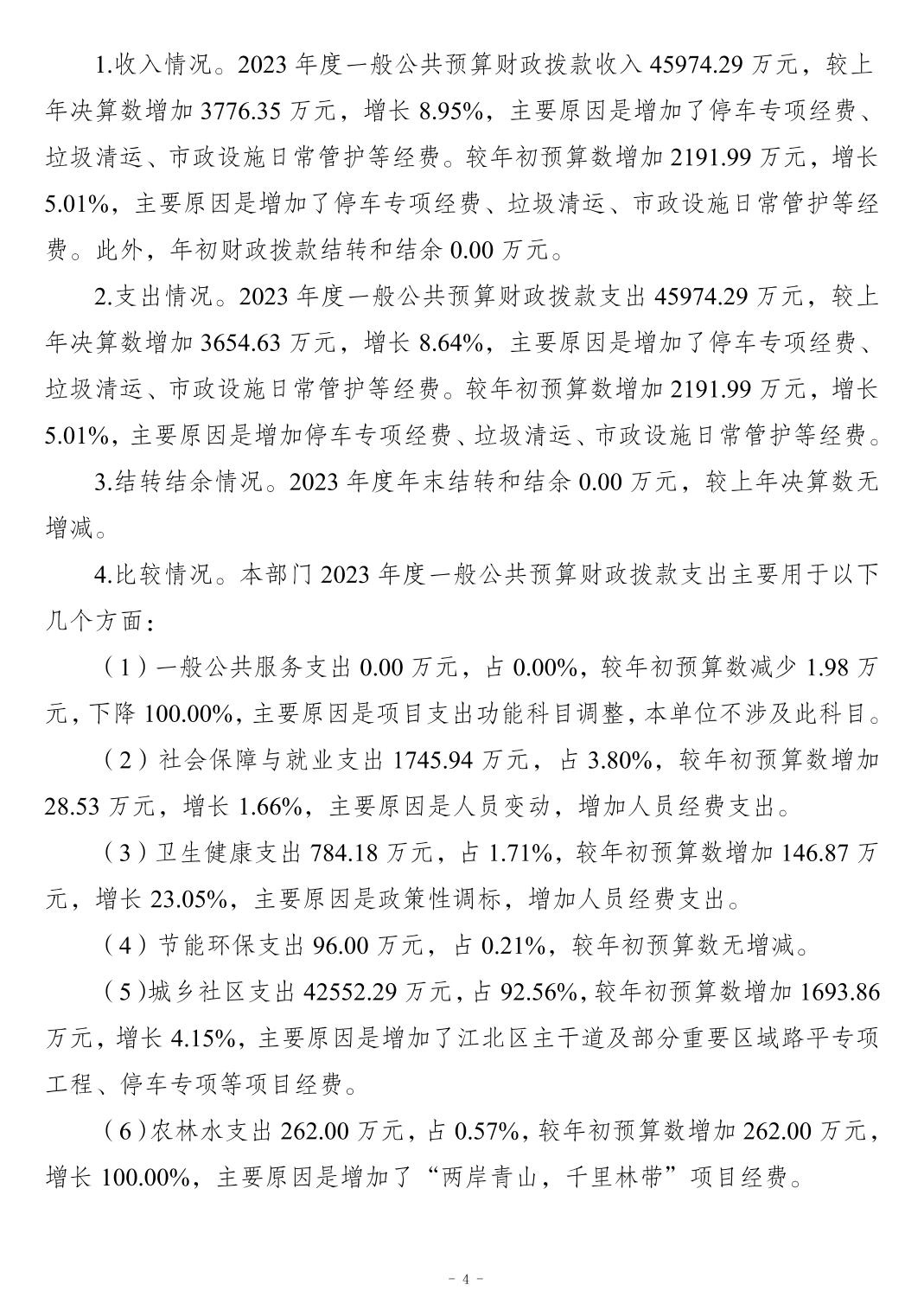 重慶市江北區(qū)城市管理局2023 年度系統(tǒng)決算公開說明