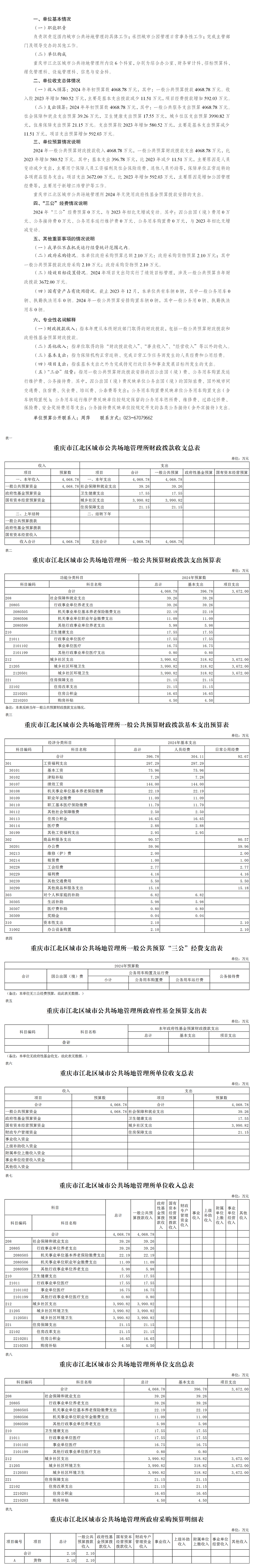 重慶市江北區城市公共場地管理所2024年預算情況說明