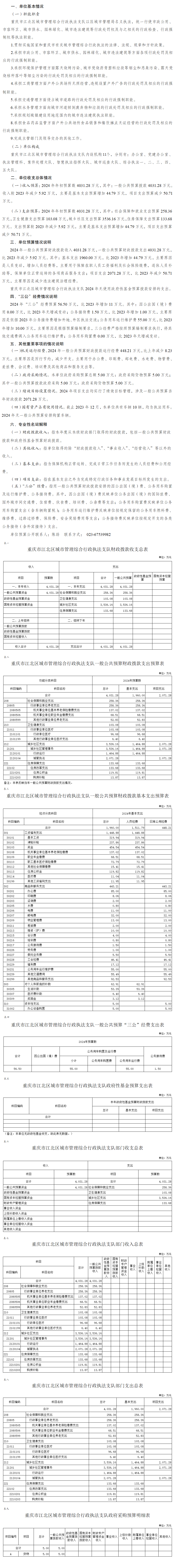 重慶市江北區城市管理綜合行政執法支隊2024年預算情況說明