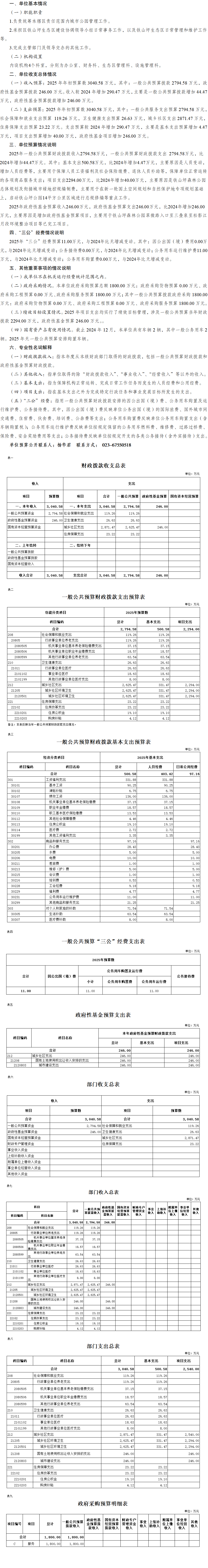 重慶市江北區(qū)公園管理中心(重慶市江北區(qū)鐵山坪生態(tài)區(qū)管理中心)2025年單位預(yù)算情況說(shuō)明
