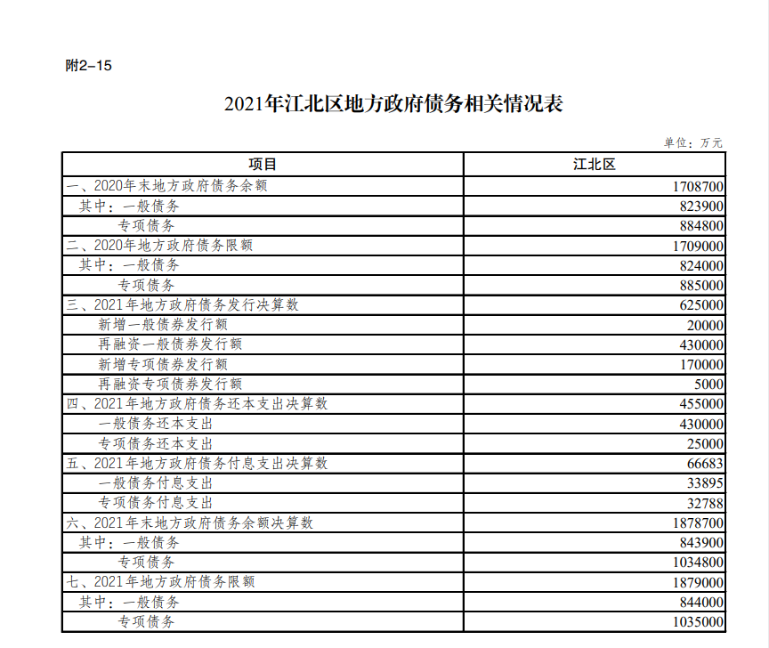 重慶市江北區人民政府關于江北區2021年決算的報告(2021年地方政府債務相關情況)