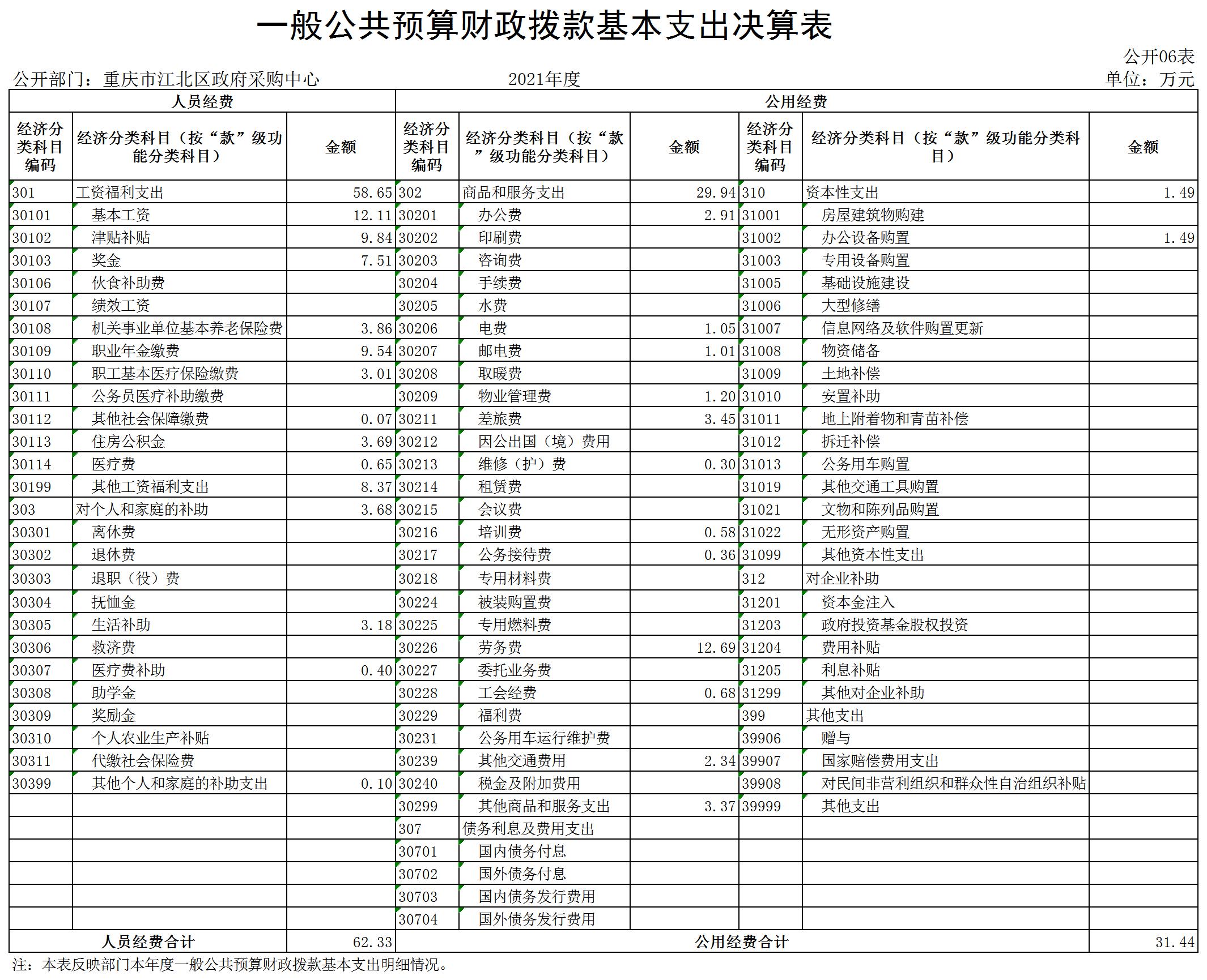 重慶市江北區政府采購中心2021年度部門決算情況說明