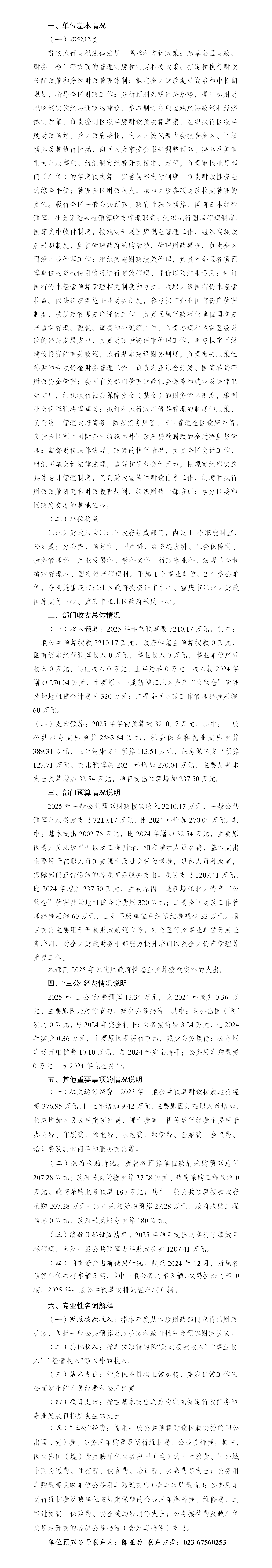 重慶市江北區財政局2025年部門預算情況說明