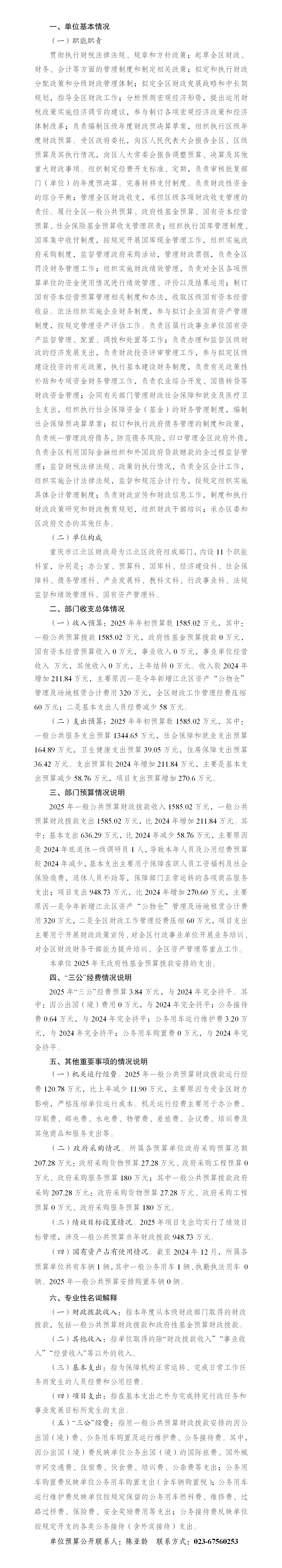 重慶市江北區(qū)財政局(本級)2025年單位預算情況說明