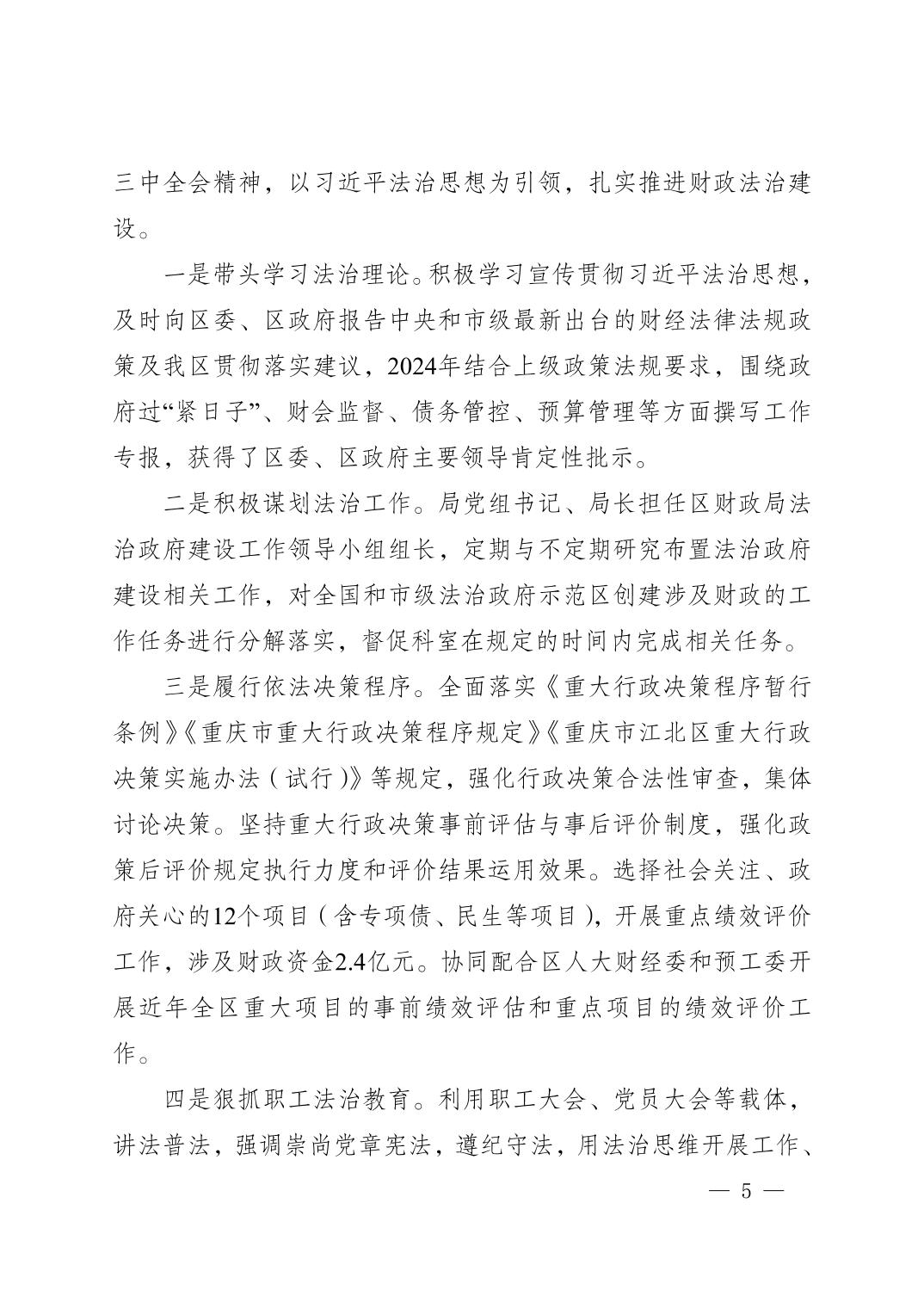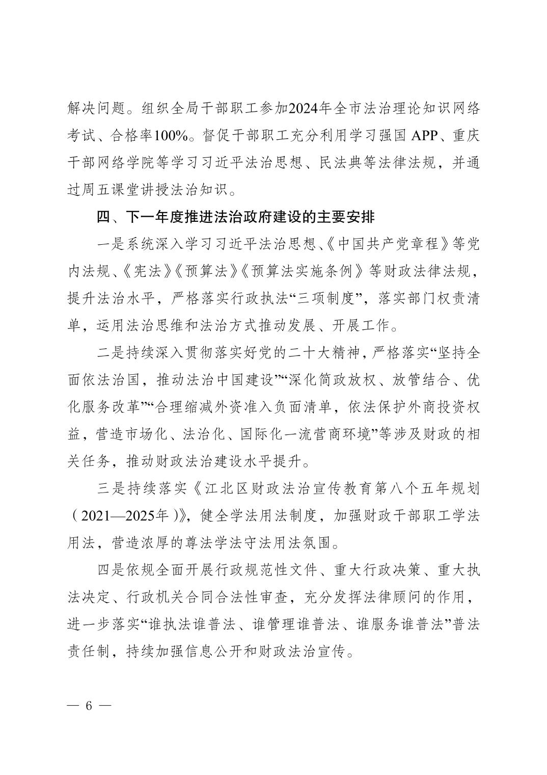 重慶市江北區財政局2024年法治政府建設情況報告