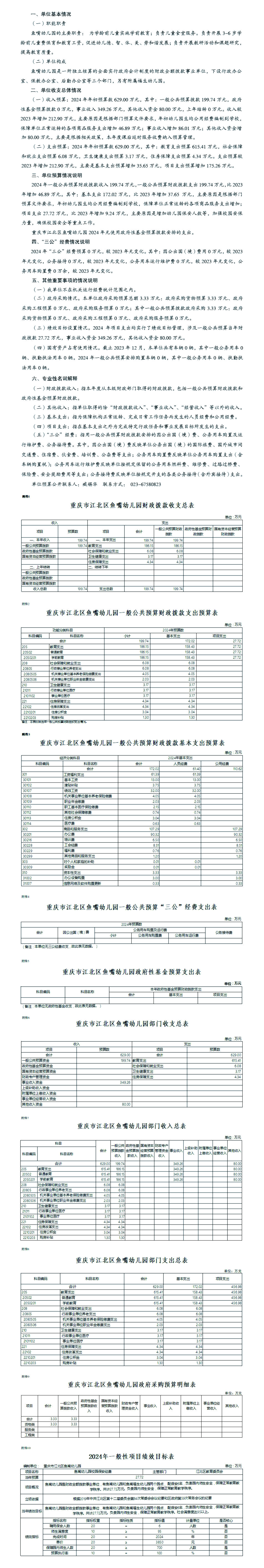 重慶市江北區魚嘴幼兒園2024年部門預算情況說明