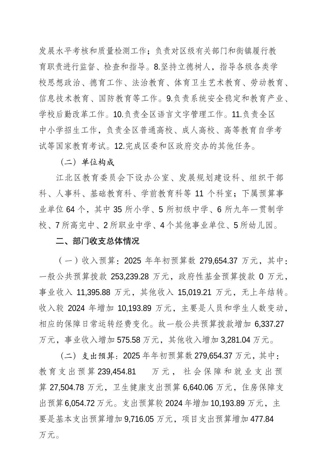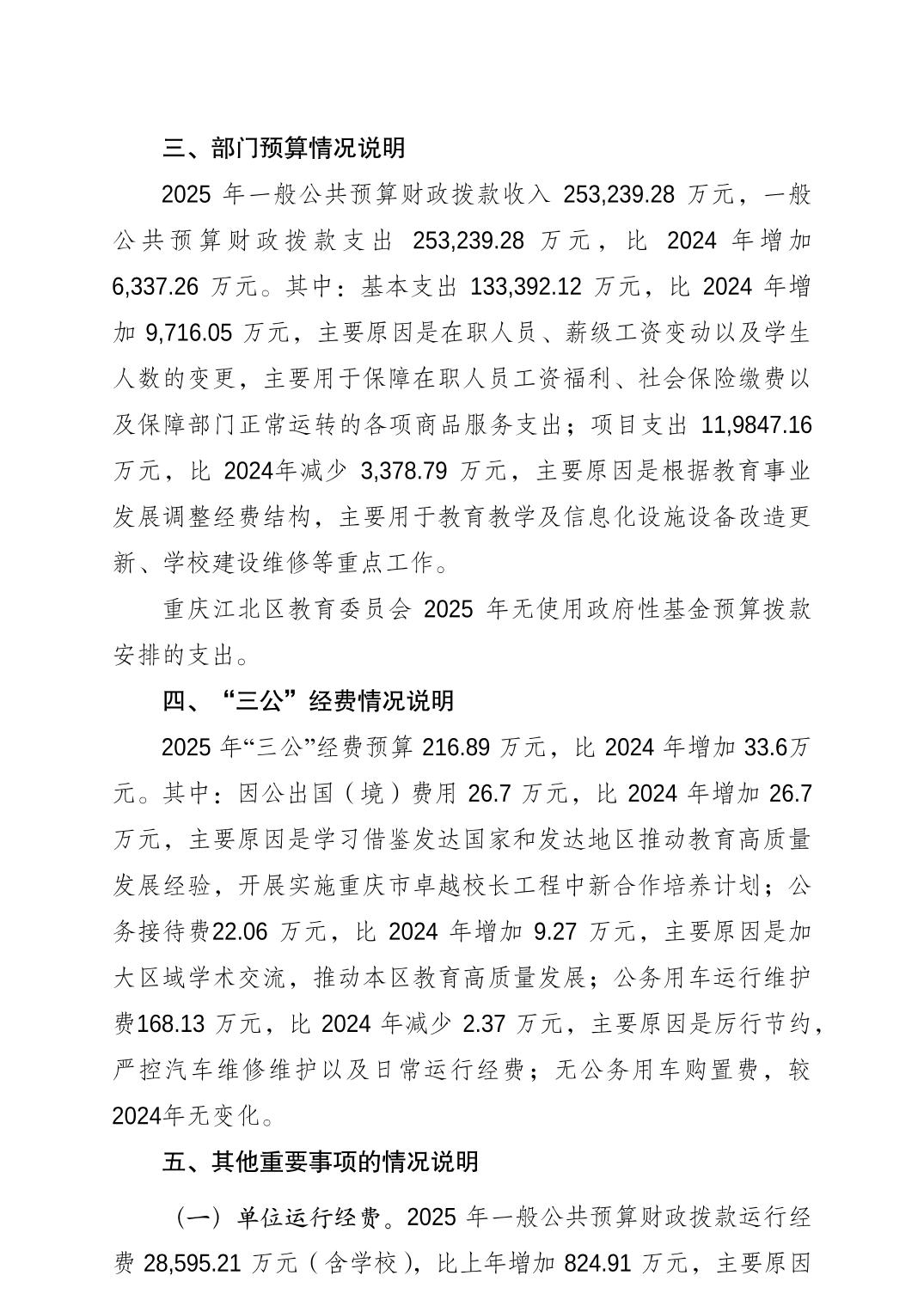 重慶市江北區(qū)教育委員會2025年部門預算情況說明
