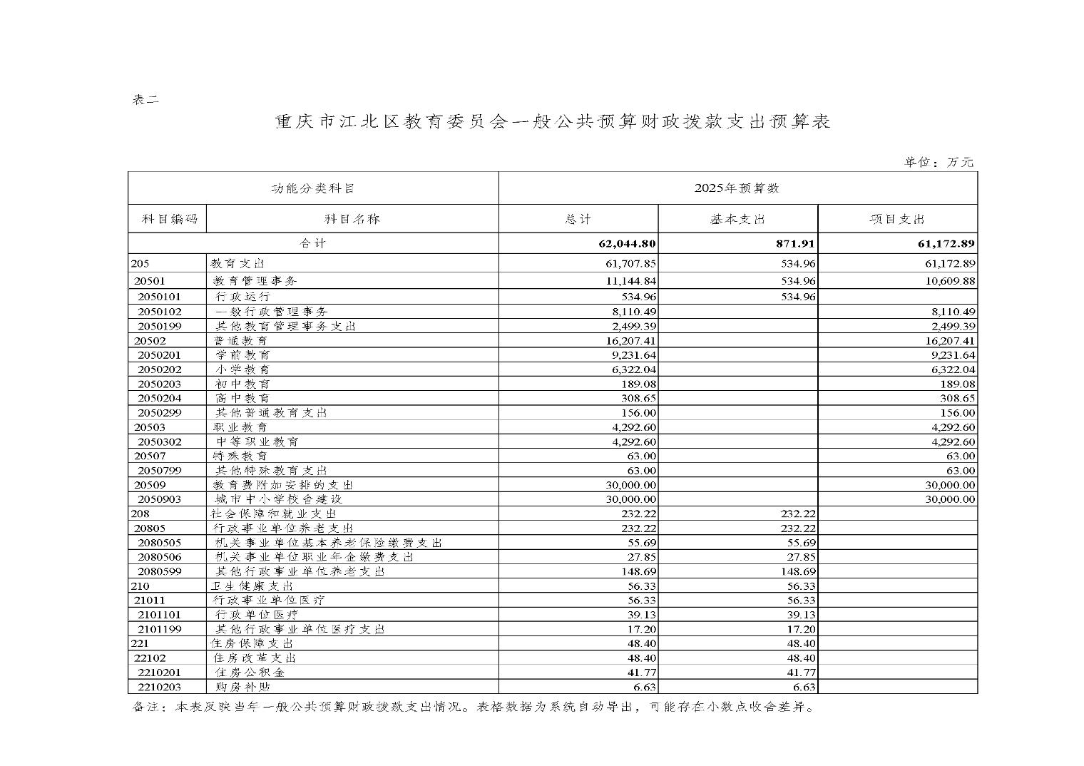 重慶市江北區(qū)教育委員會(本級)2025年單位預(yù)算情況說明