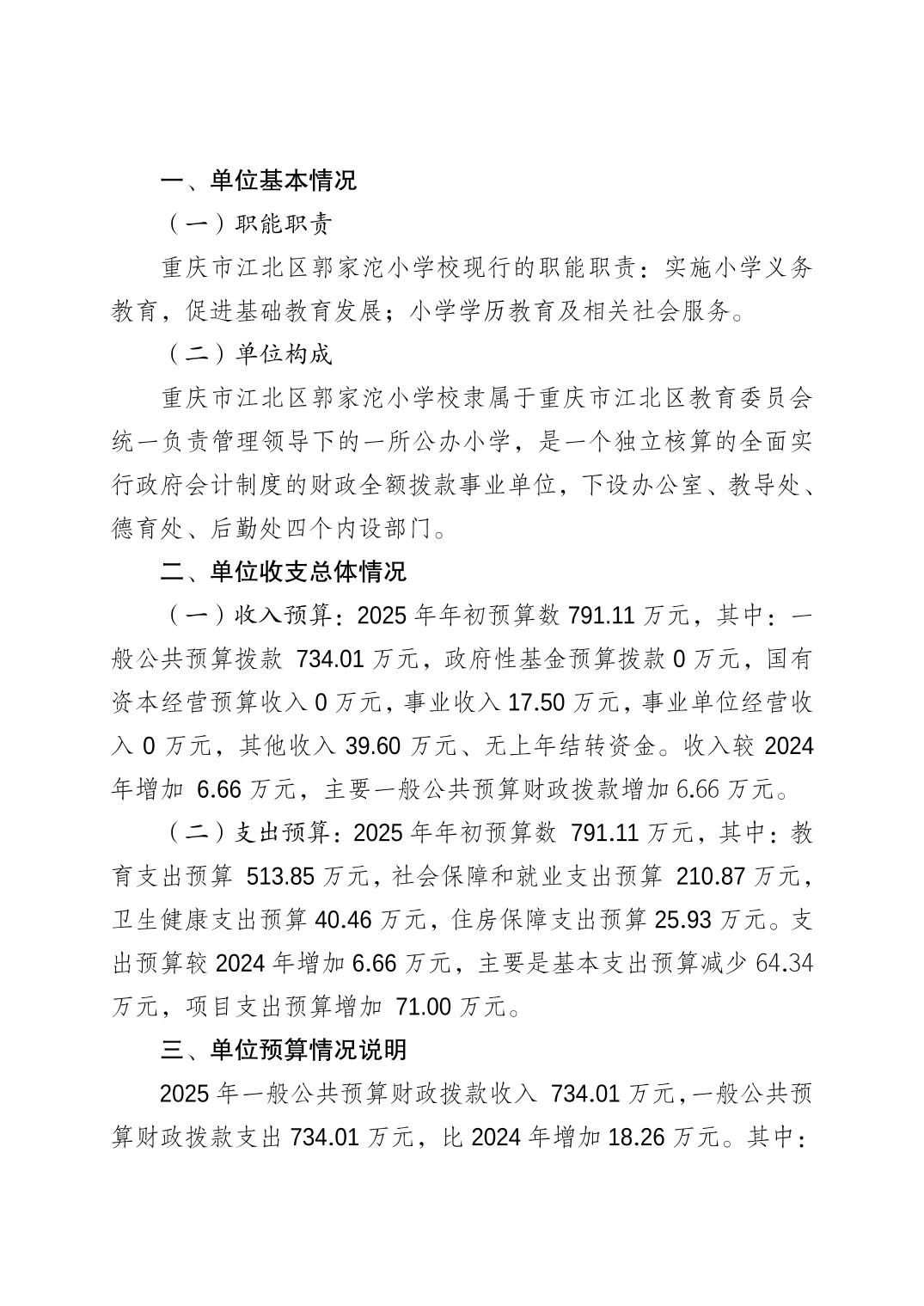 重慶市江北區(qū)郭家沱小學(xué)校2025年預(yù)算情況說(shuō)明