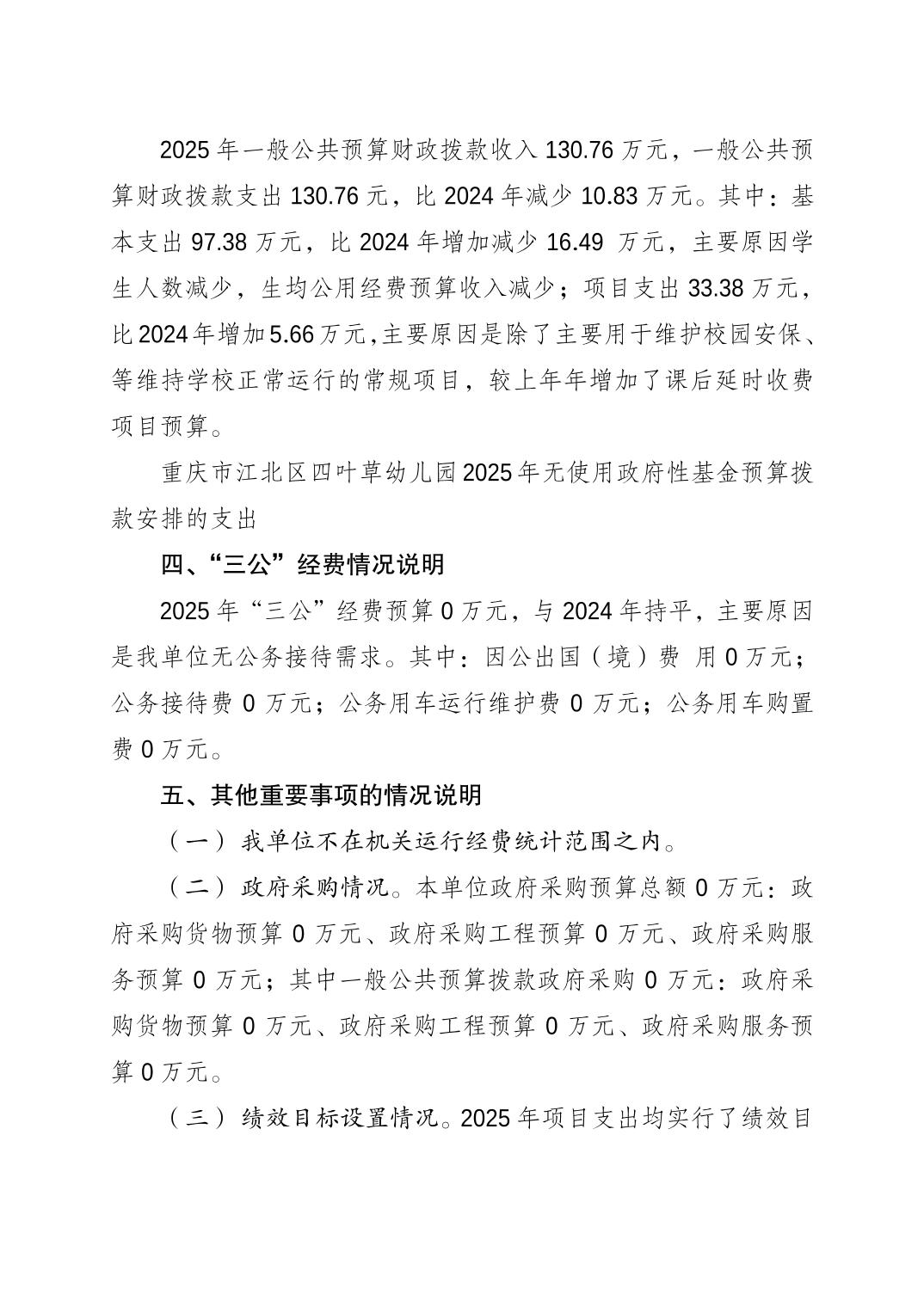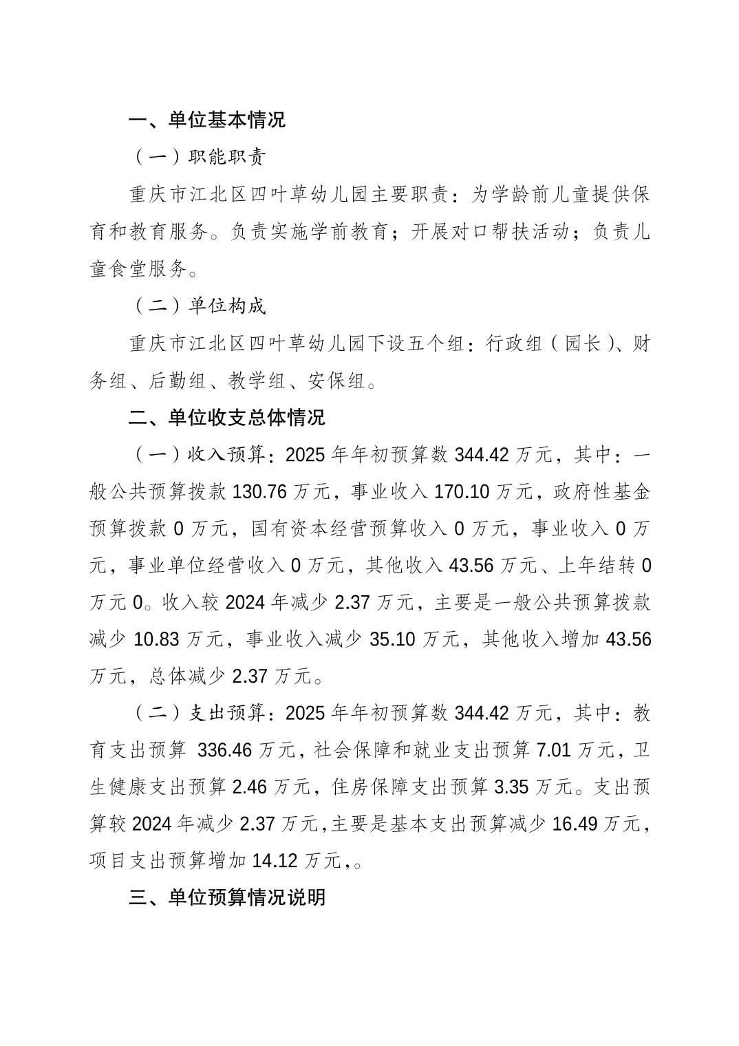 重慶市江北區(qū)四葉草幼兒園2025年單位預(yù)算情況說明