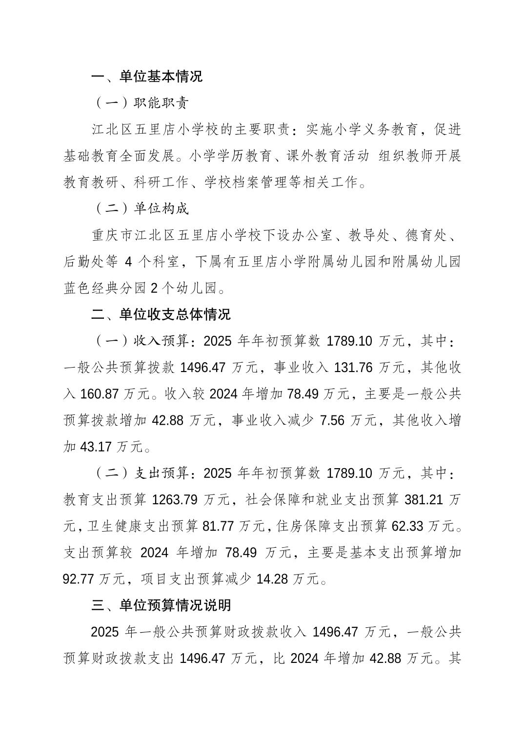 重慶市江北區(qū)五里店小學(xué)校2025年單位預(yù)算情況說(shuō)明