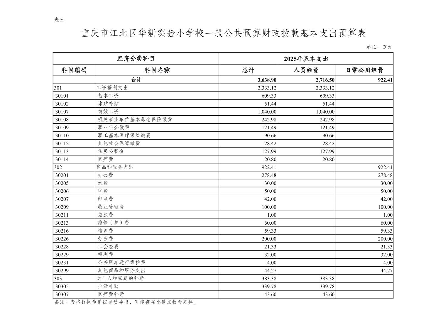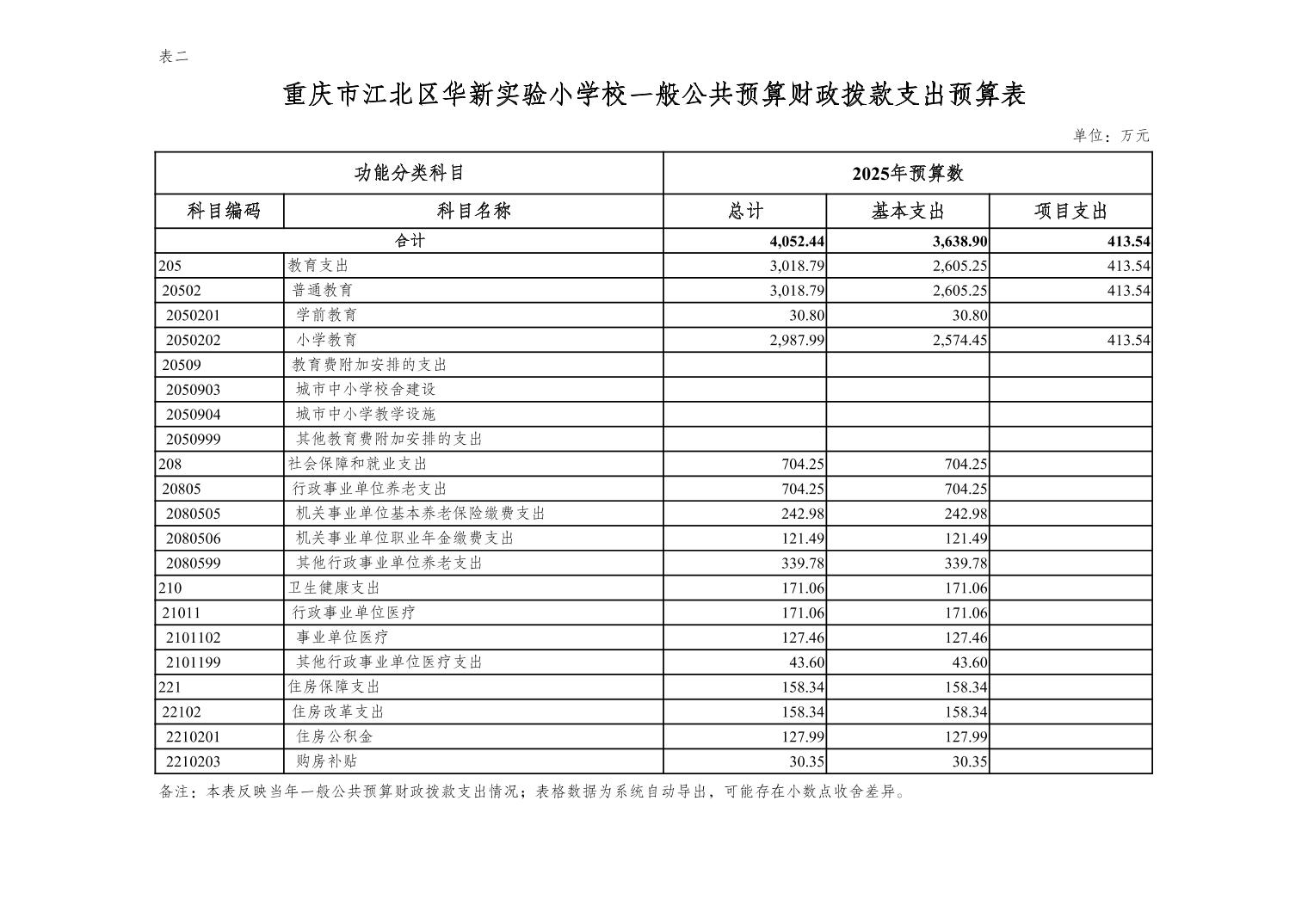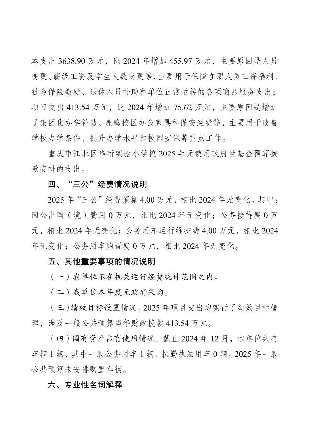 重慶市江北區華新實驗小學校2025年單位預算情況說明