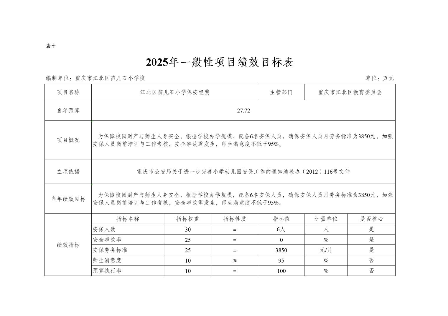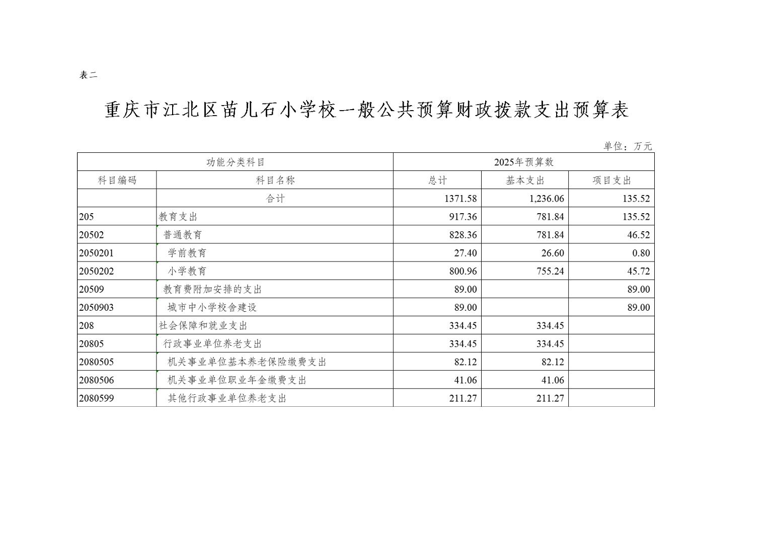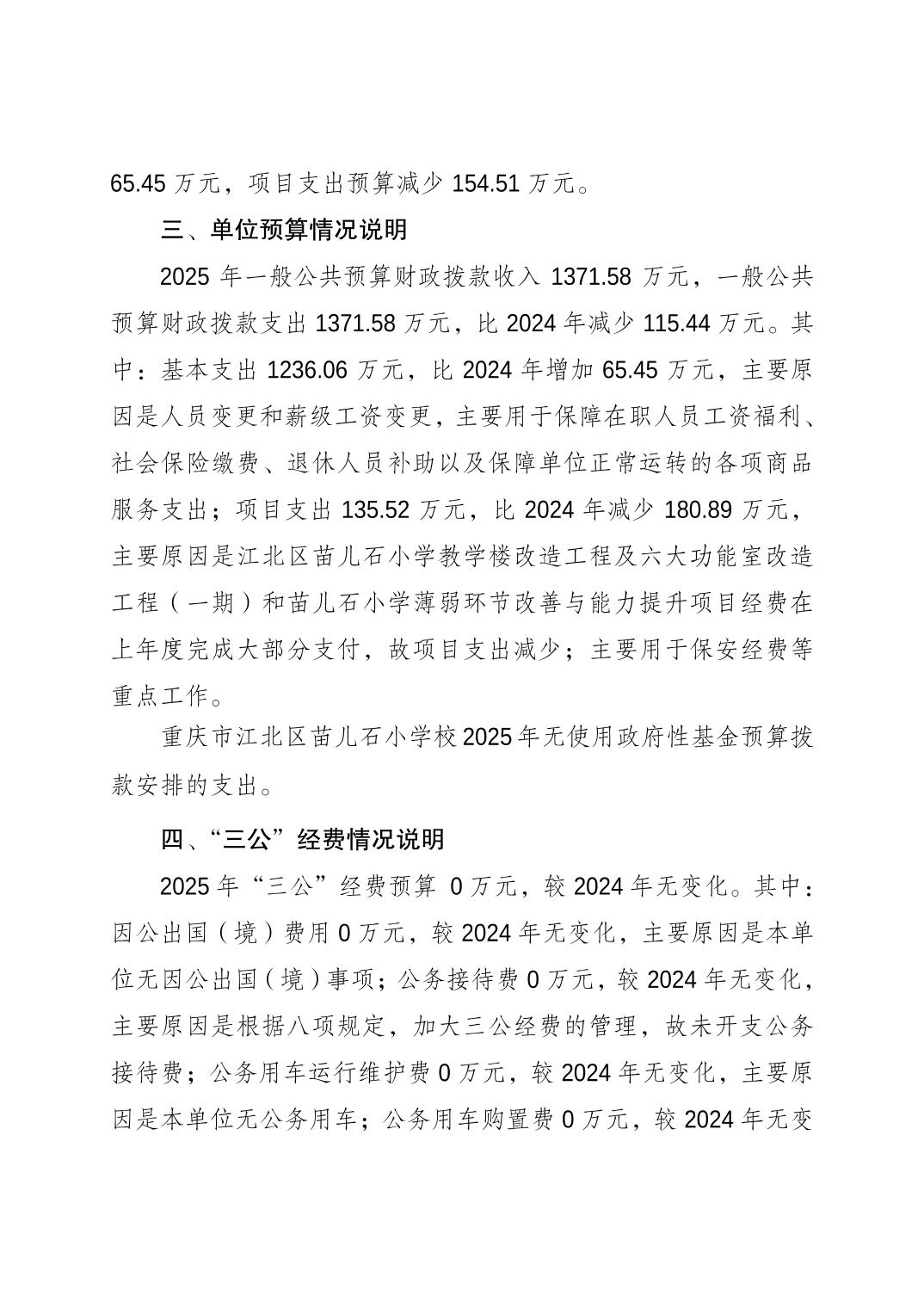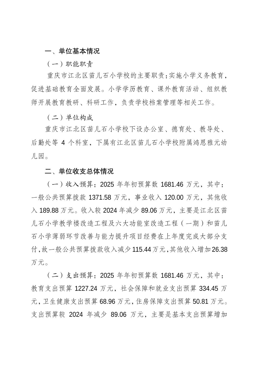 重慶市江北區苗兒石小學校2025年單位預算情況說明