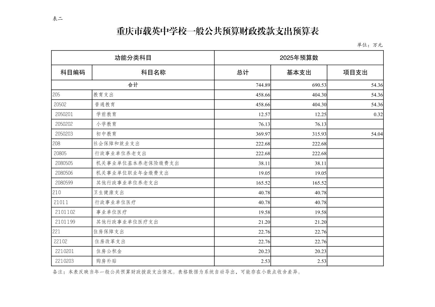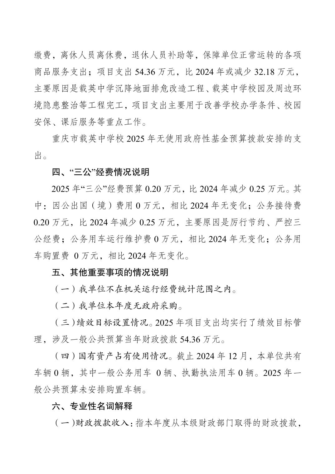 重慶市載英中學(xué)2025年單位預(yù)算情況說明