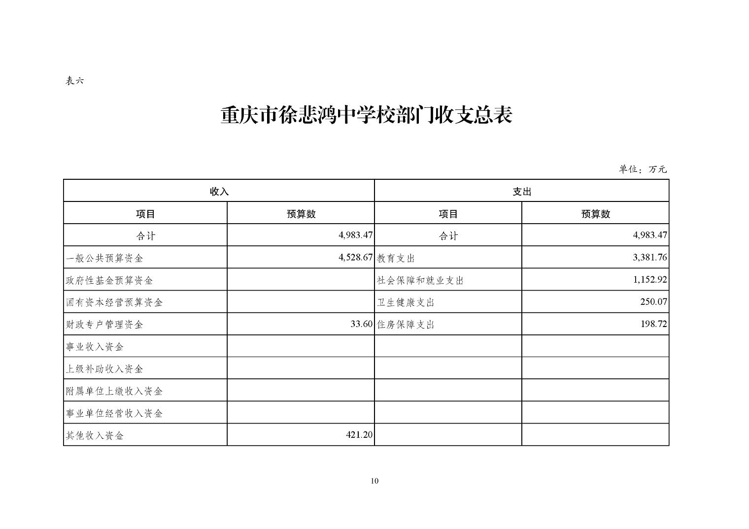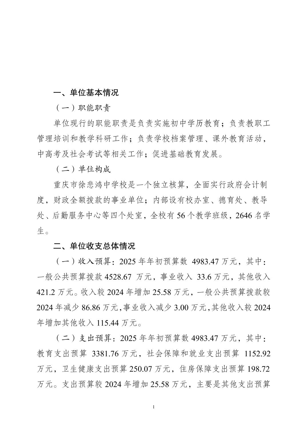重慶市徐悲鴻中學2025年單位預算情況說明