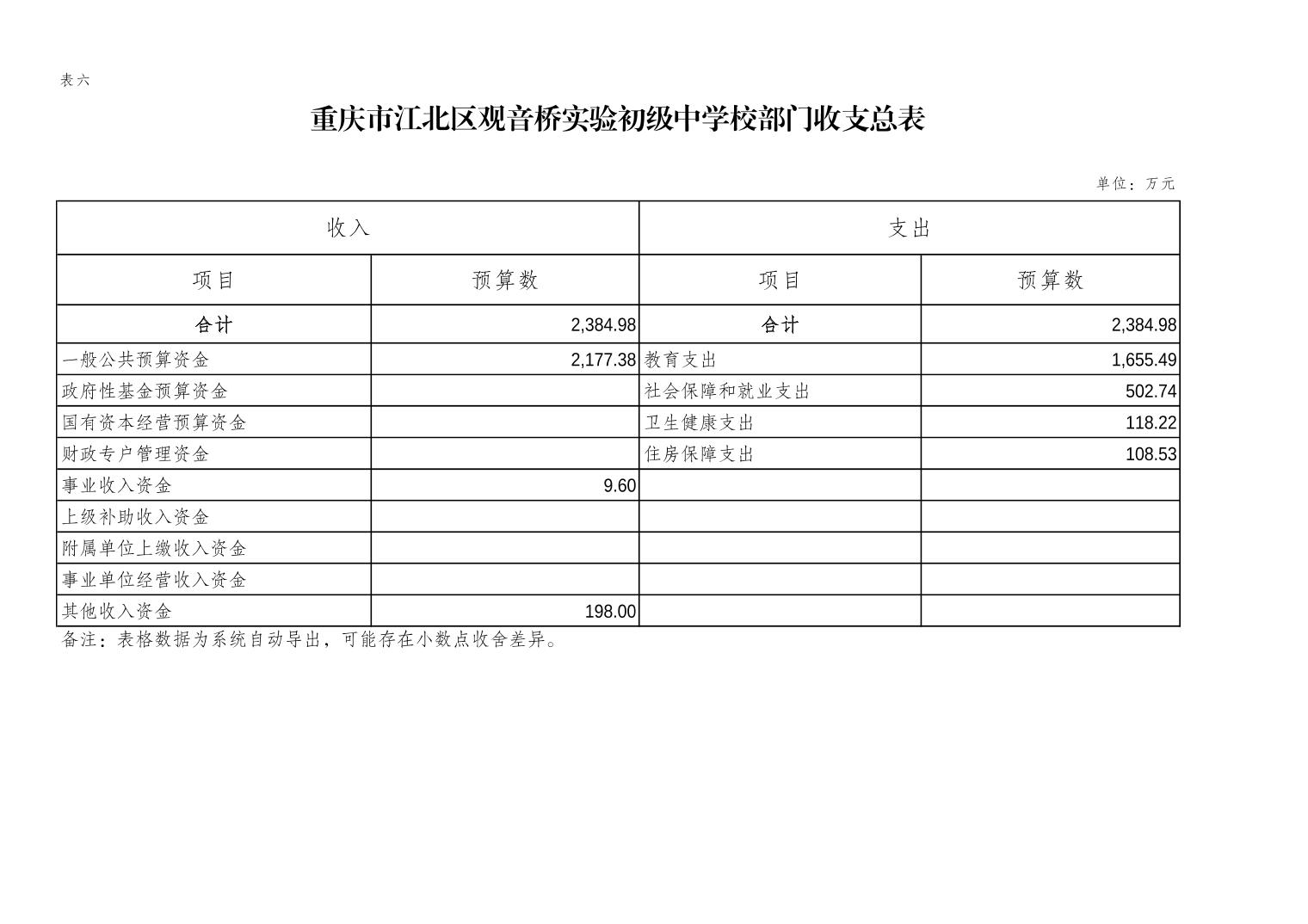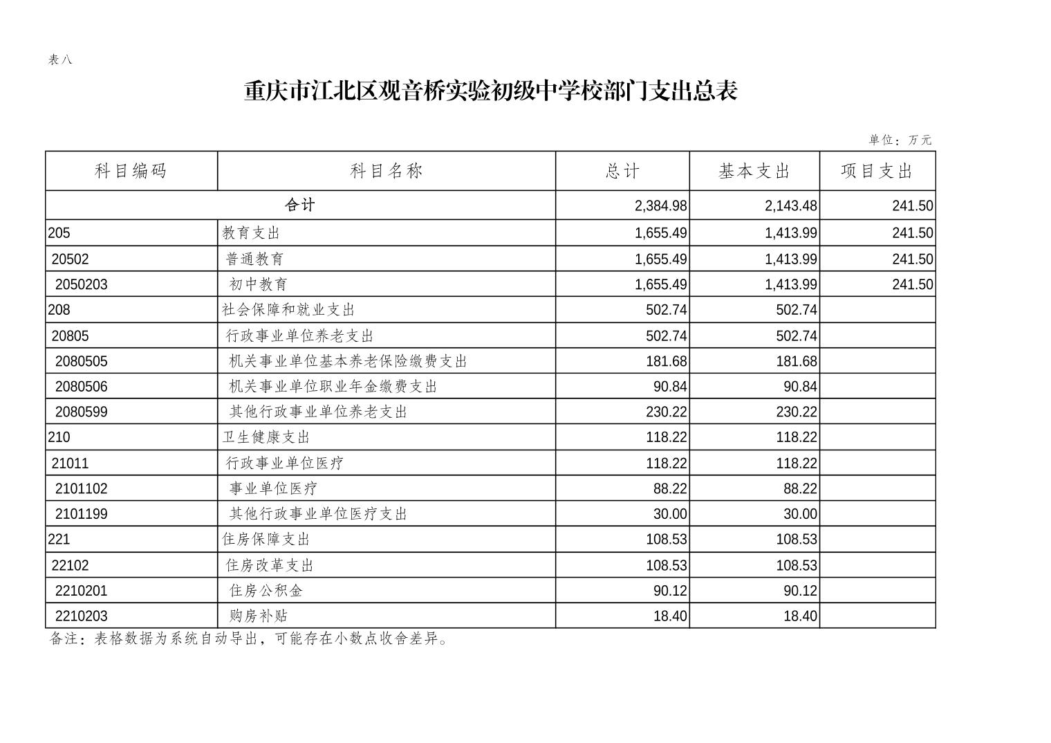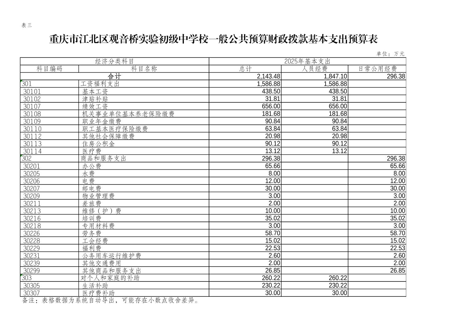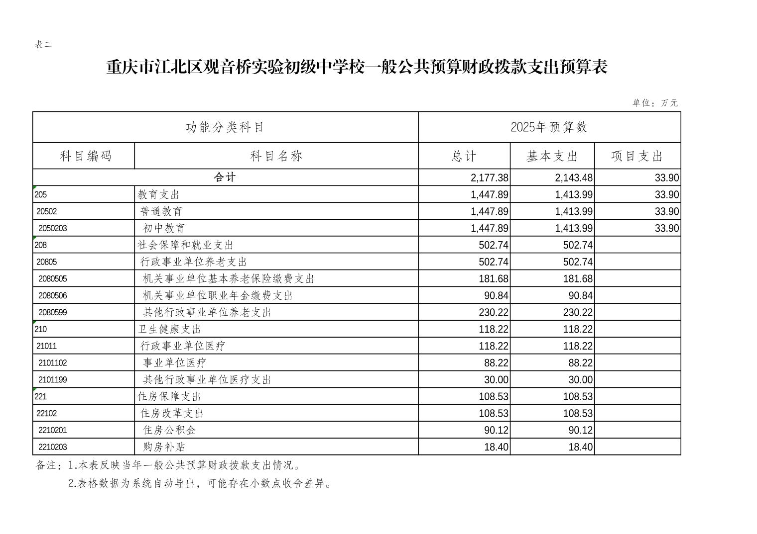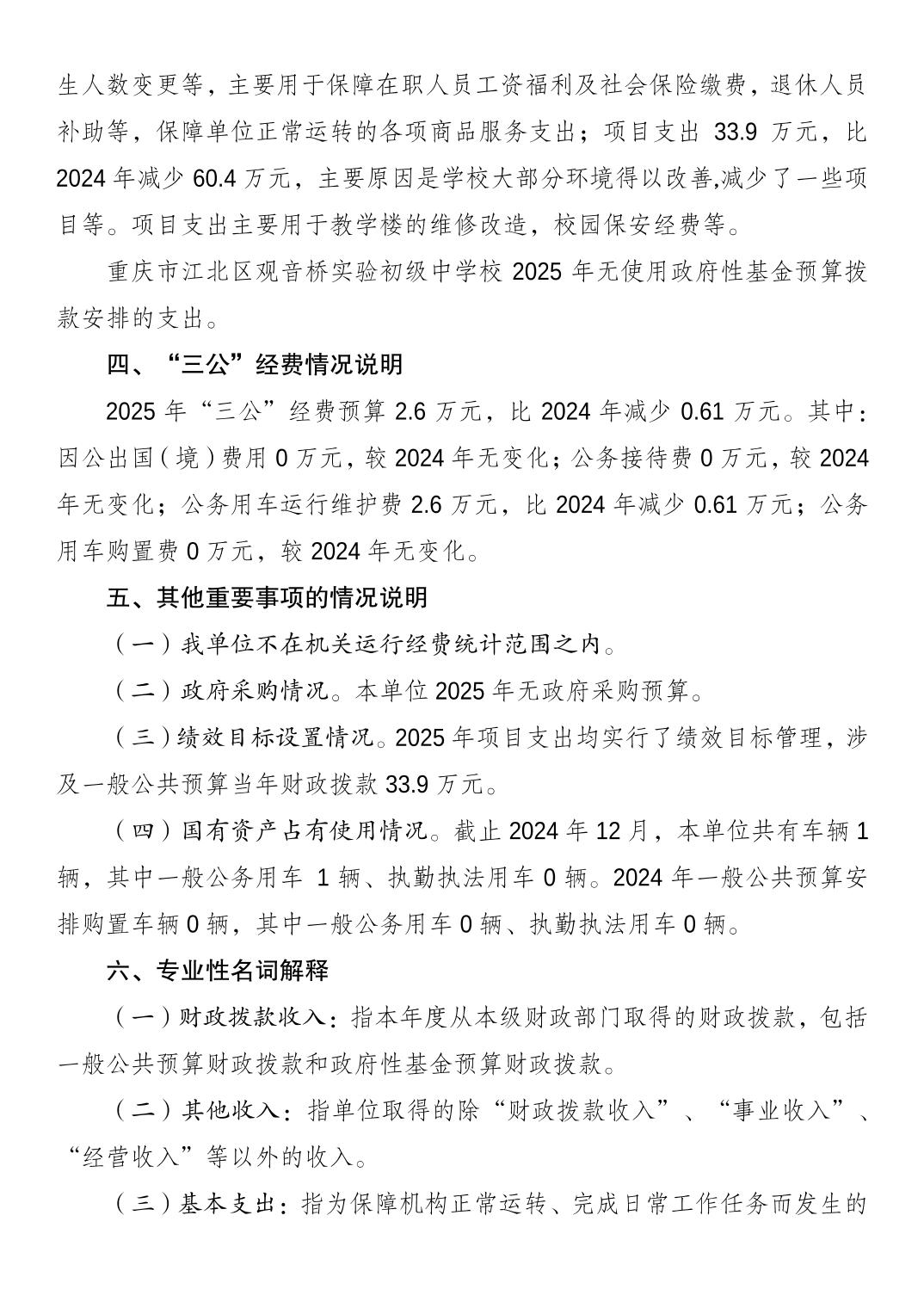 重慶市江北區觀音橋實驗初級中學校2025年單位預算情況說明