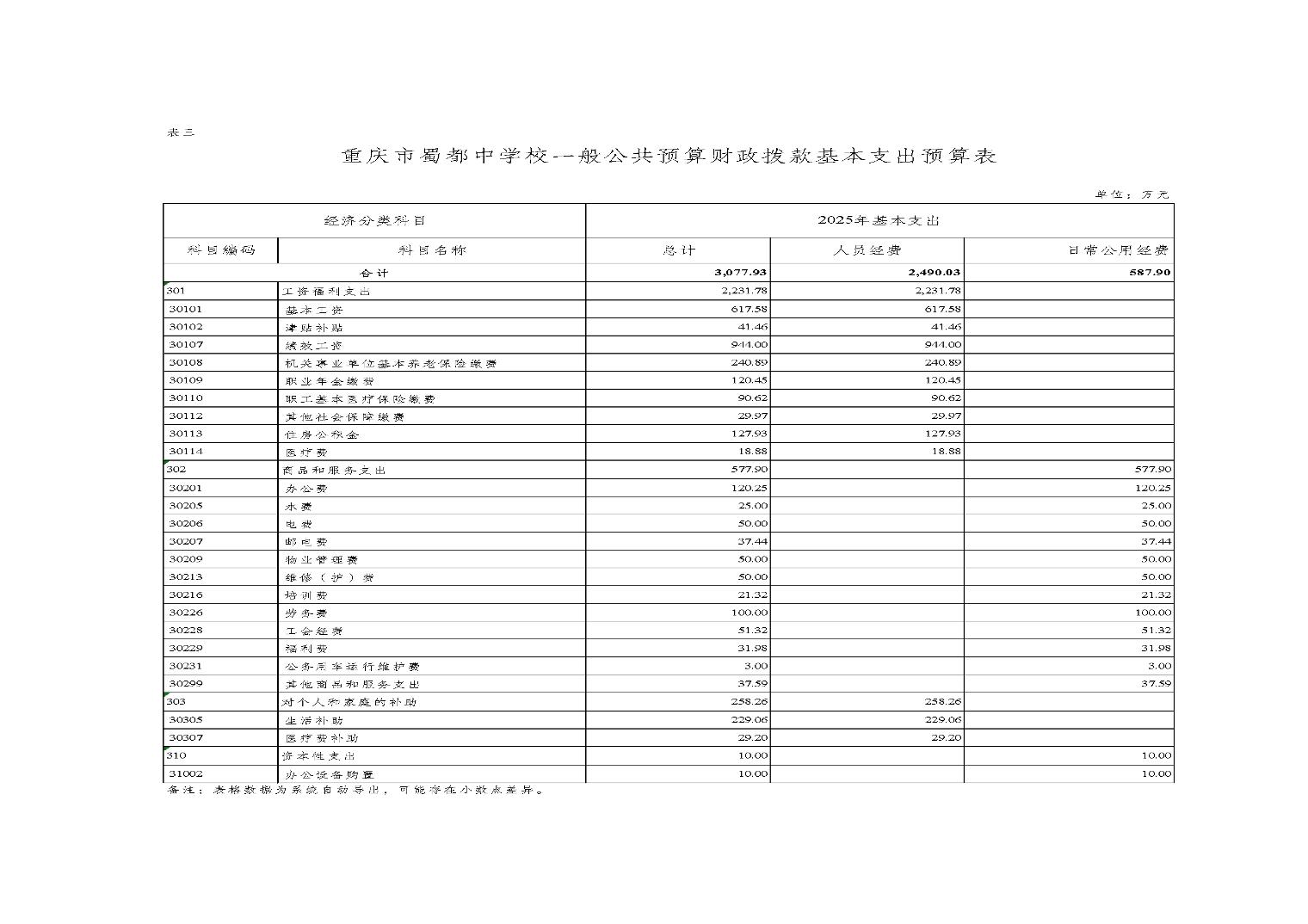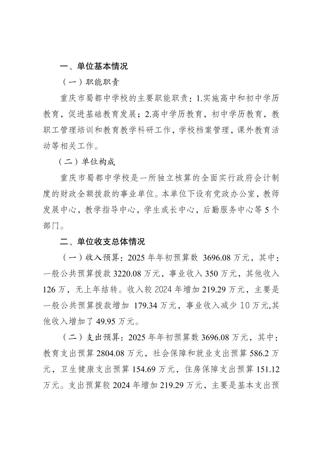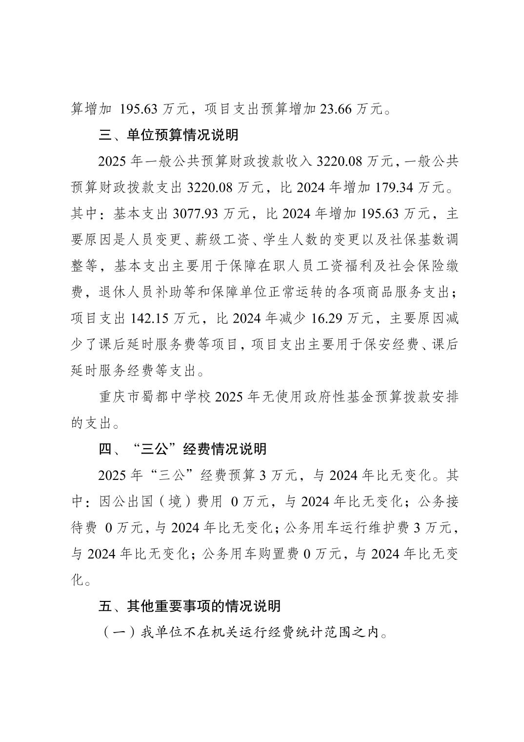 重慶市蜀都中學校2025年單位預算情況說明