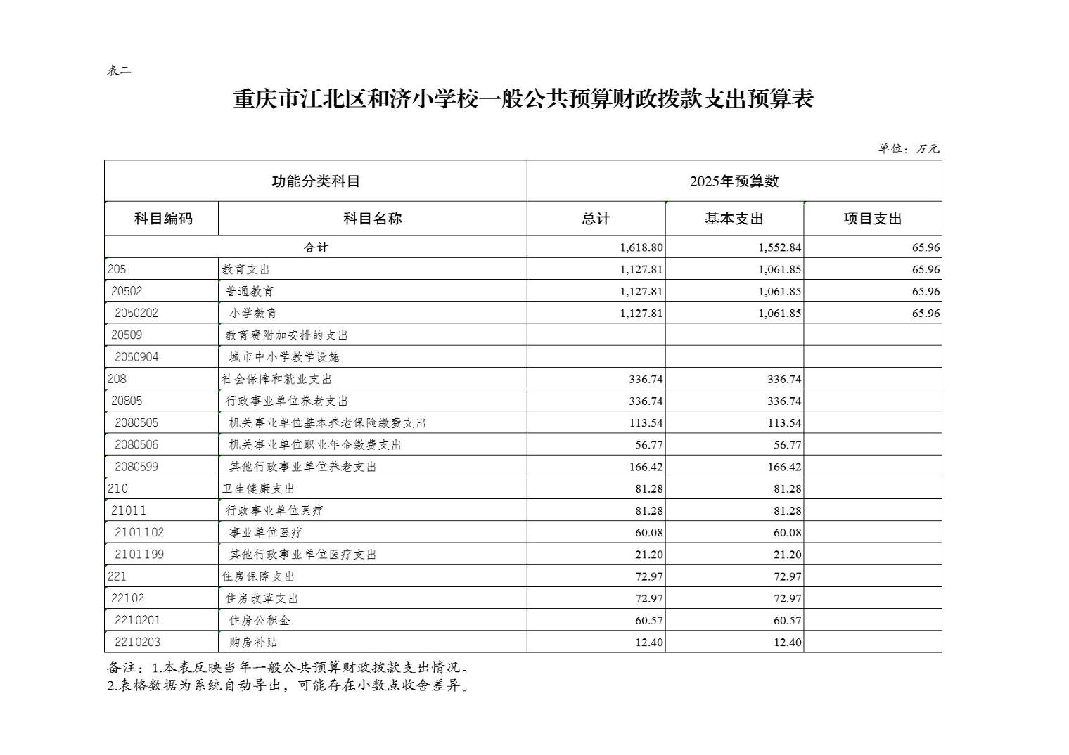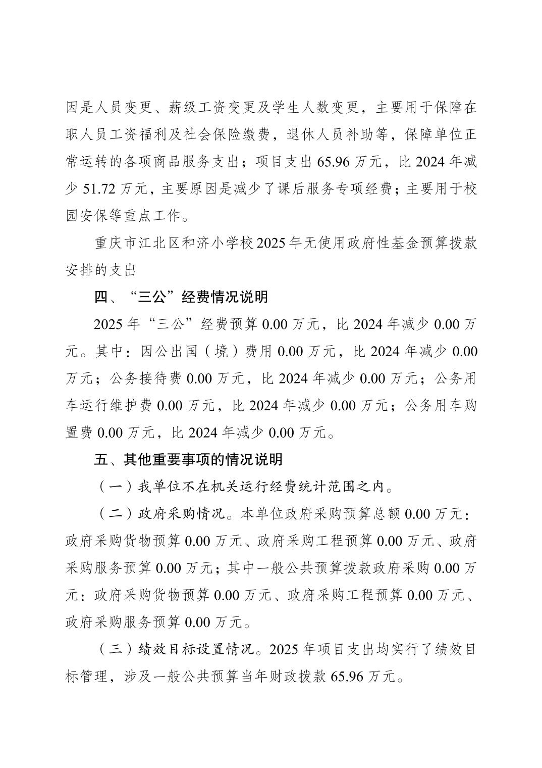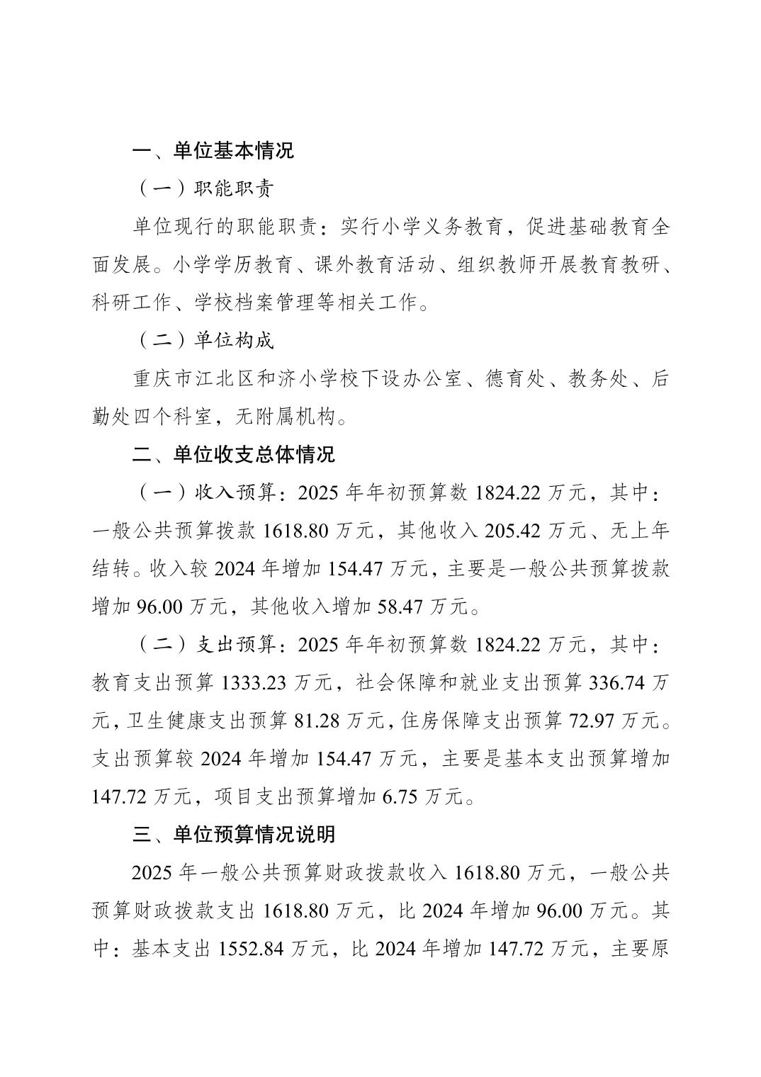 重慶市江北區和濟小學校2025年單位預算情況說明