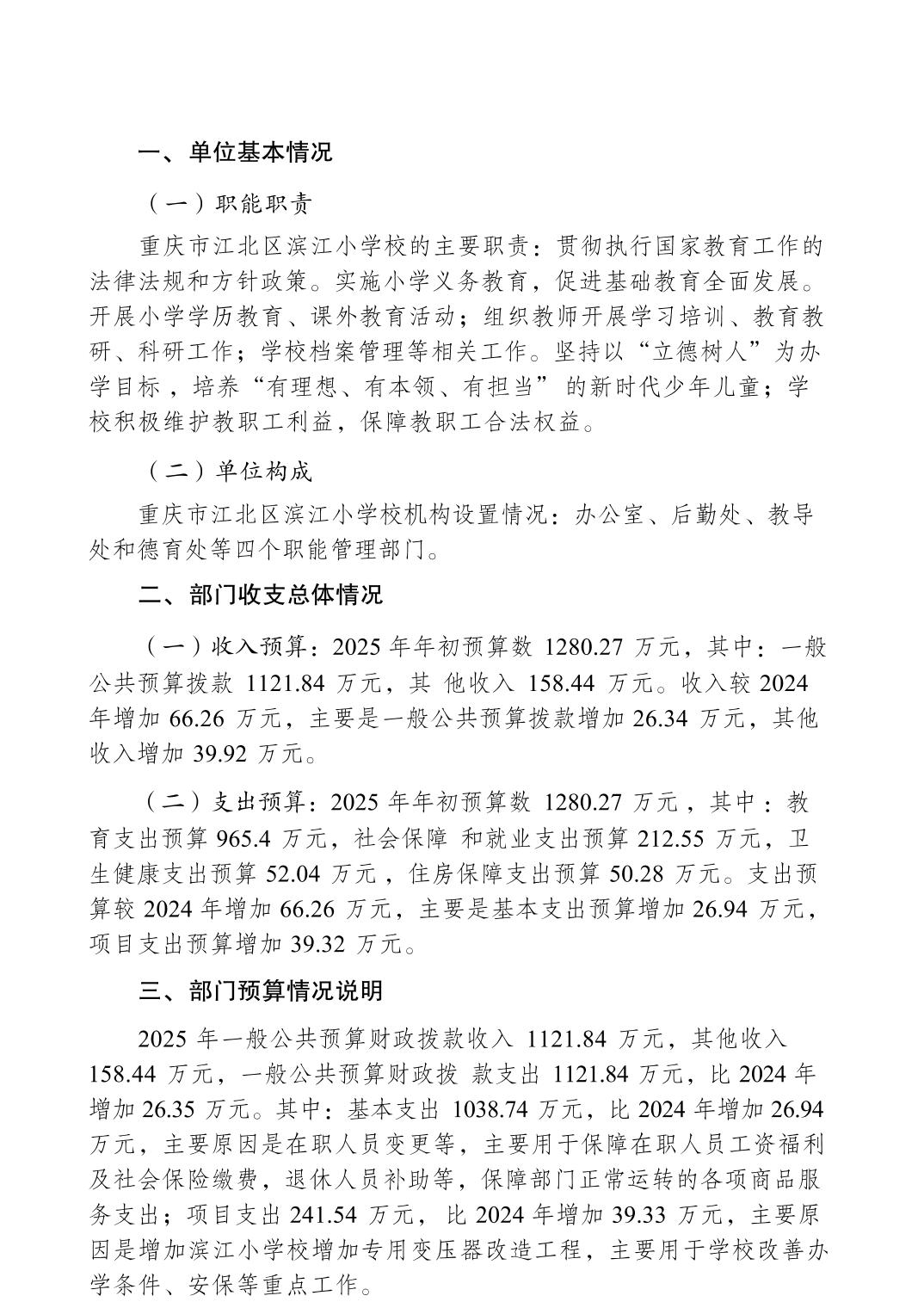 重慶市江北區濱江小學校2025年部門預算情況說明