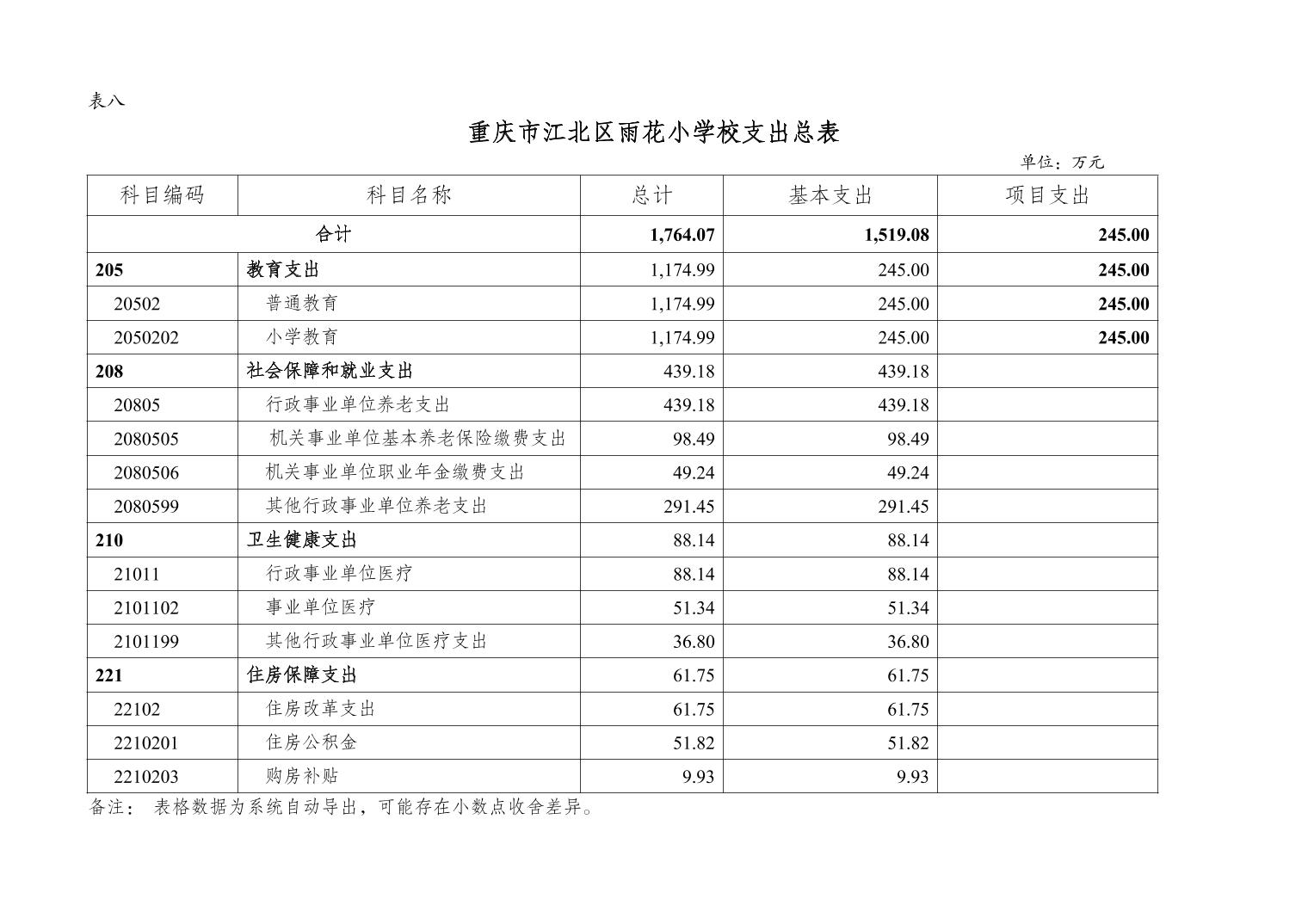 重慶市江北區雨花小學校2025年單位預算情況說明
