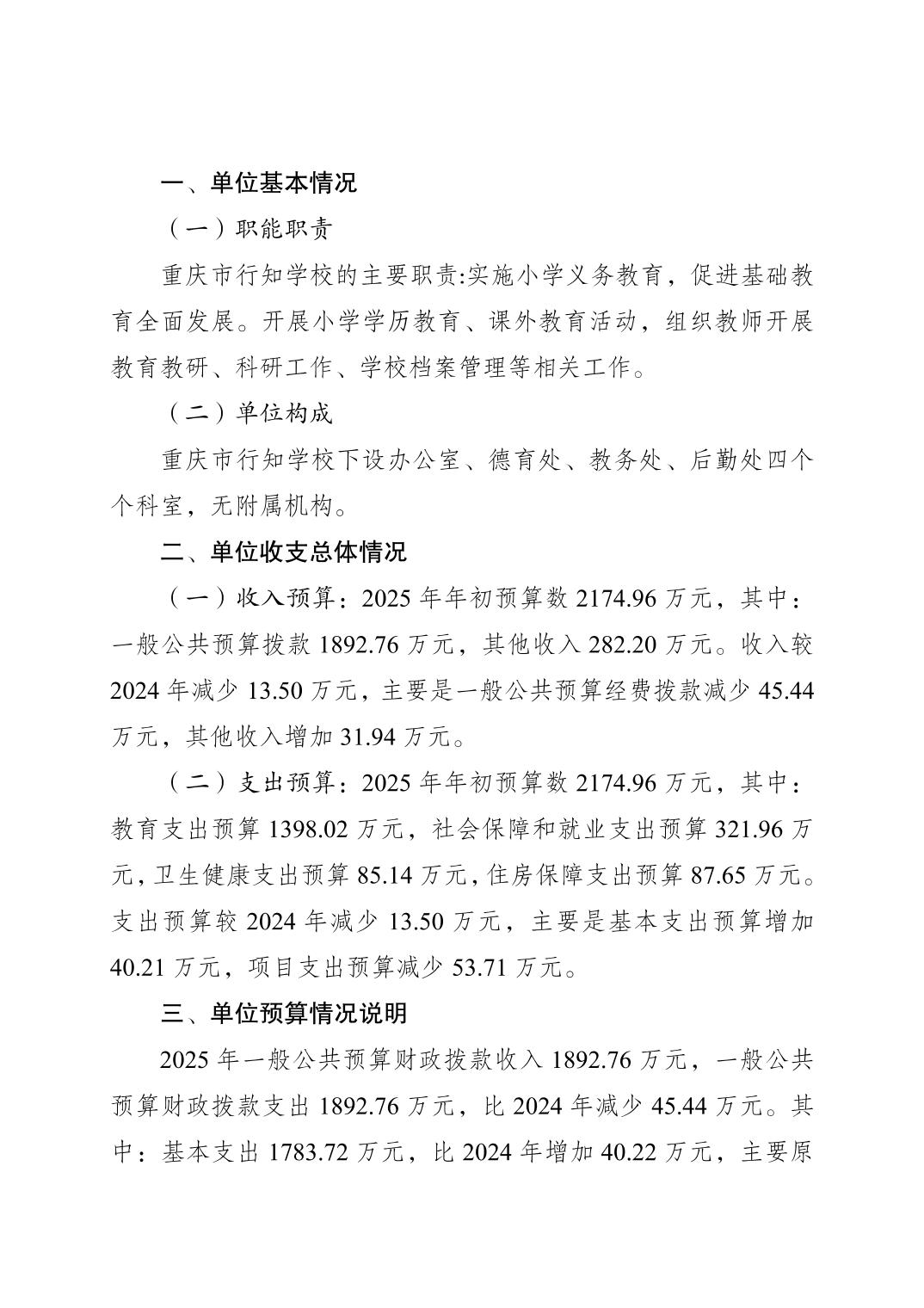 重慶市行知學(xué)校2025年單位預(yù)算情況說(shuō)明