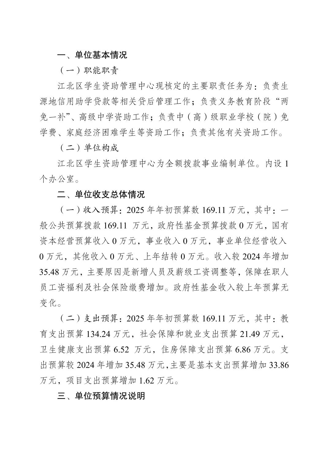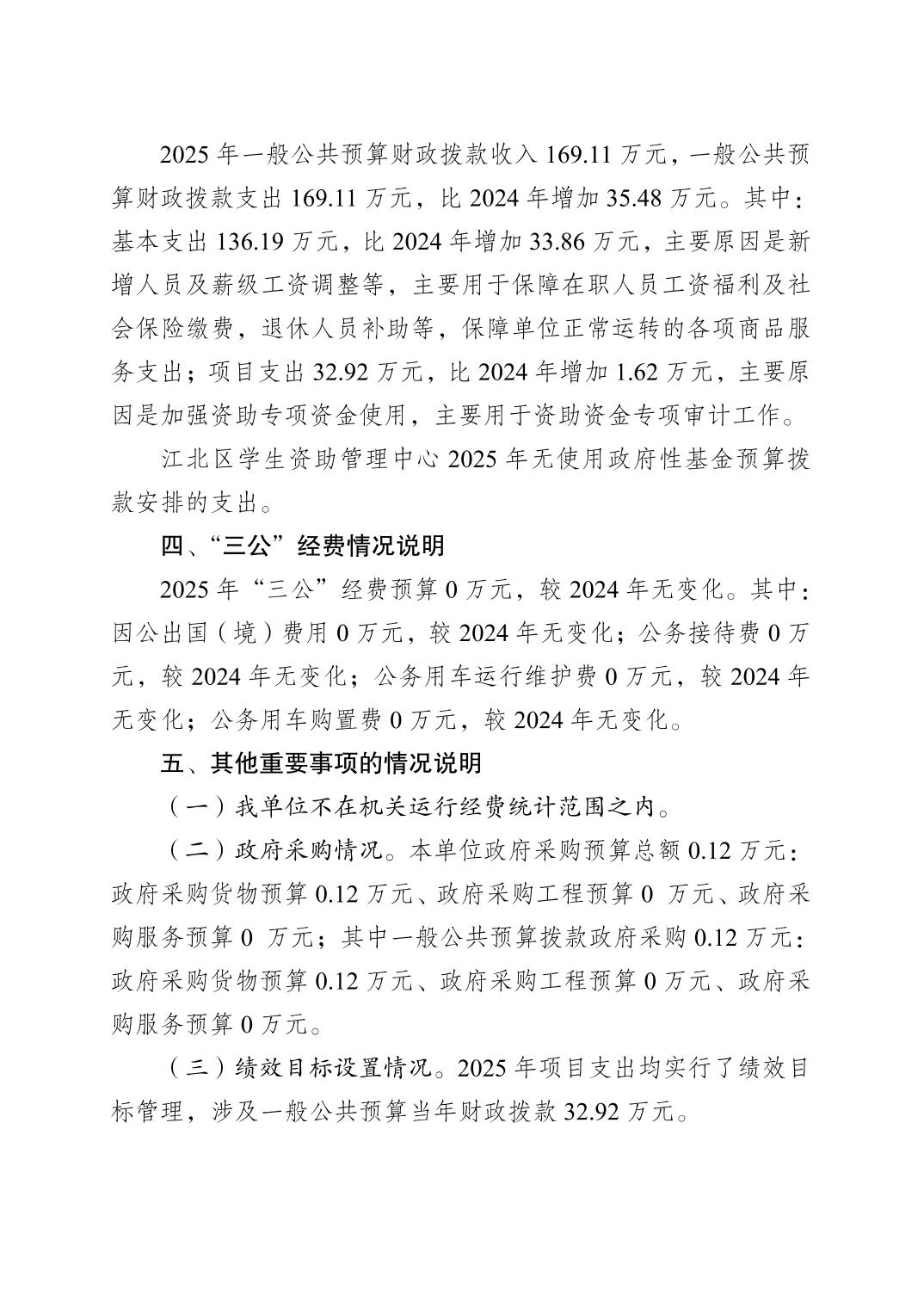 重慶市江北區學生資助管理中心2025年單位預算情況說明