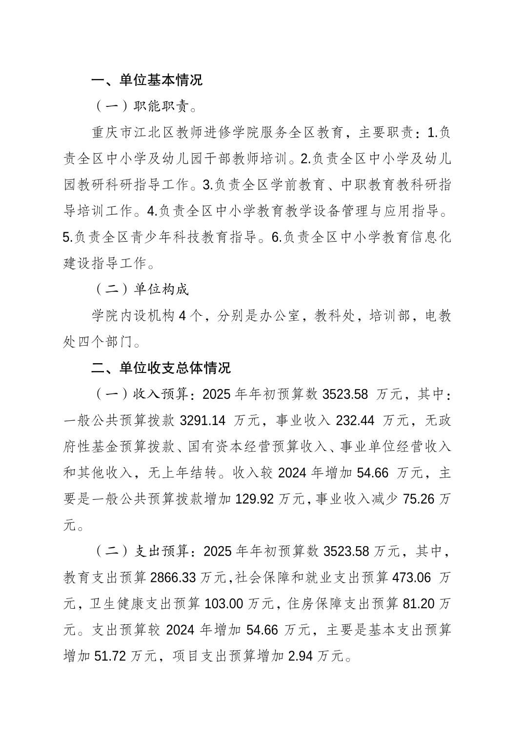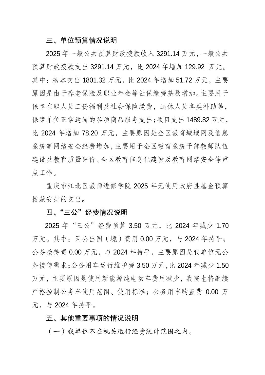 重慶市江北區(qū)教師進修學院2025年單位預算情況說明