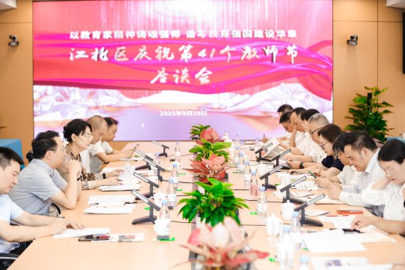 春華秋實,桃李芬芳。2025年9月10日上午,江北區舉行慶祝第41個教師節座談會,向全區廣大教師和教育工作者致以節日祝賀和誠摯問候。市委教育工委委員、市教委副主任金玲出席會議并講話。區政府副區長李四川主持會議。市教委人事處、財務處、基礎教育處以及區級相關部門領導,全區在教育工作中表現突出的集體和個人代表參加座談。