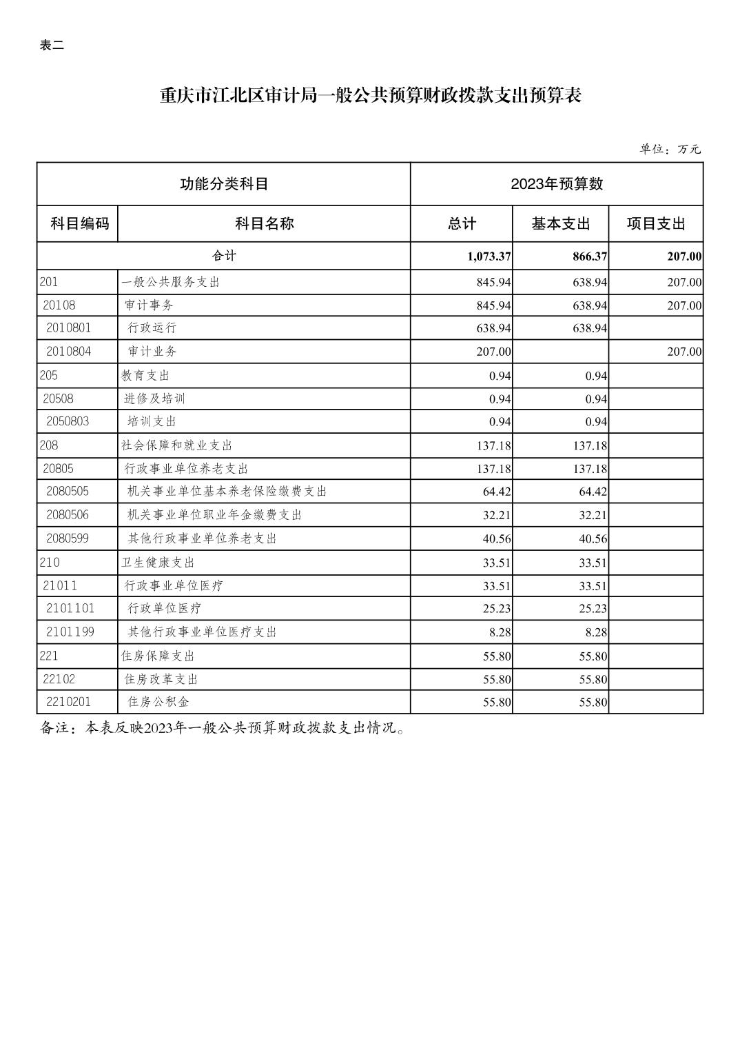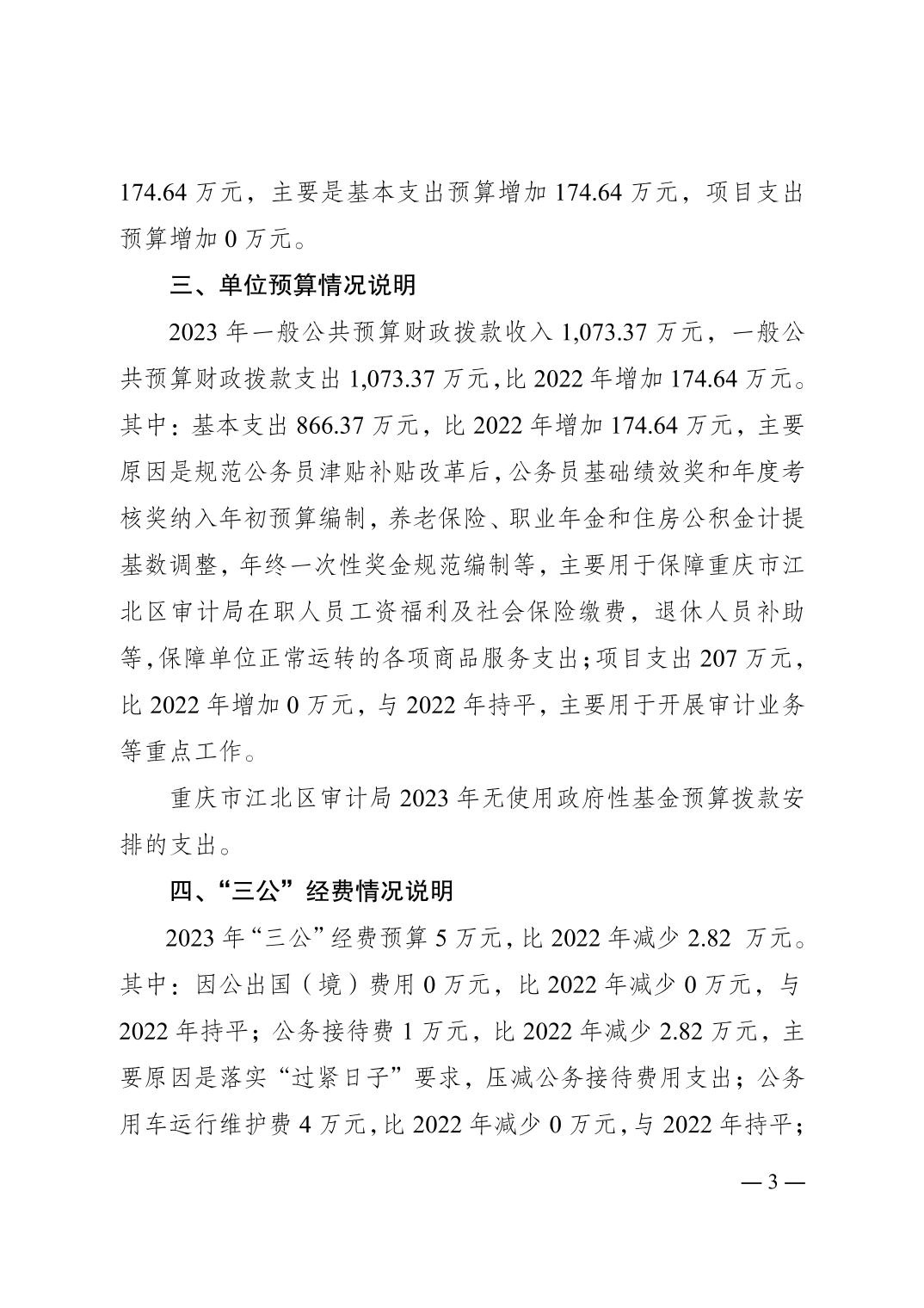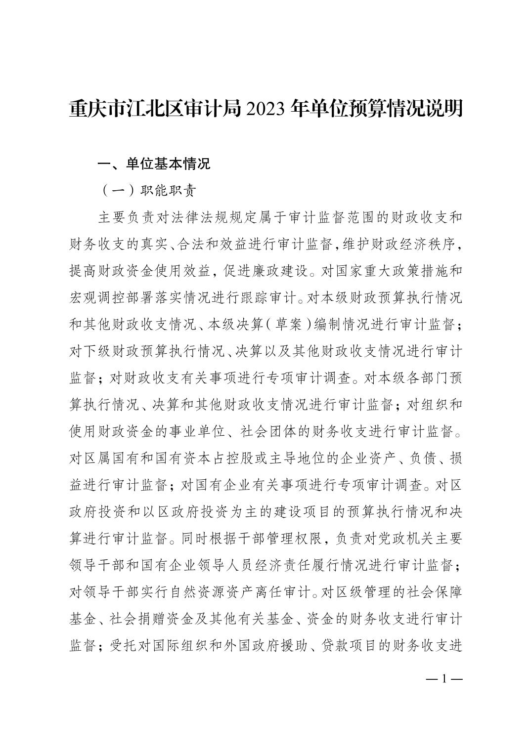 重慶市江北區(qū)審計局2023年單位預算情況說明