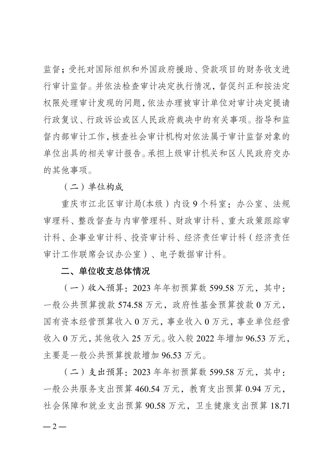 重慶市江北區(qū)審計(jì)局(本級(jí))2023年單位預(yù)算情況說明