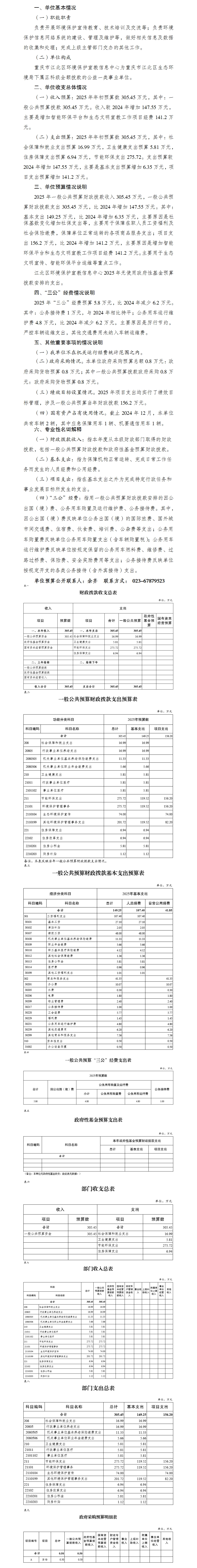 重慶市江北區環境保護宣教信息中心2025年單位預算情況說明