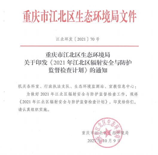 2021年江北區輻射安全與防護監督檢查計劃通知