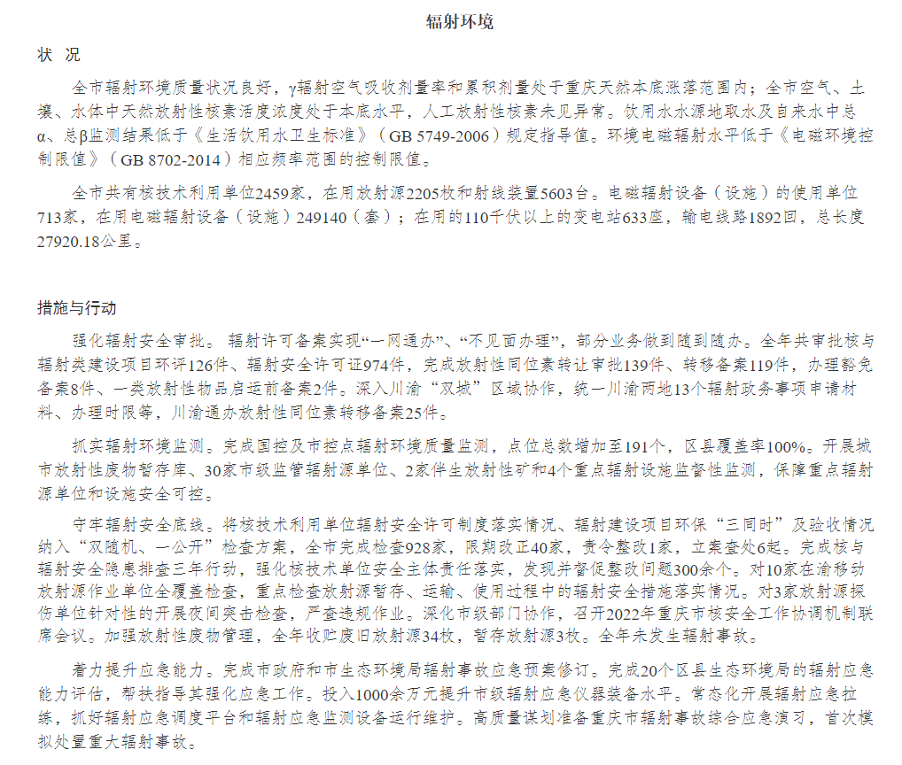 重慶市2022年輻射環(huán)境狀況公報