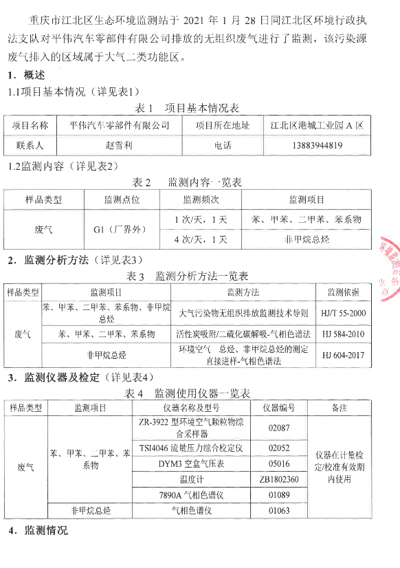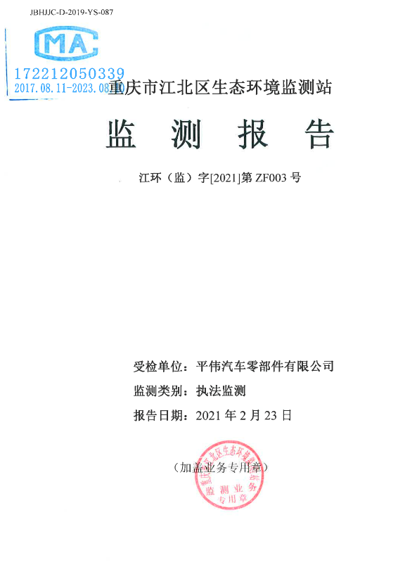 江環(huán)(監(jiān))字[2021]第ZF003號(氣)重慶平偉汽車零部件有限公司