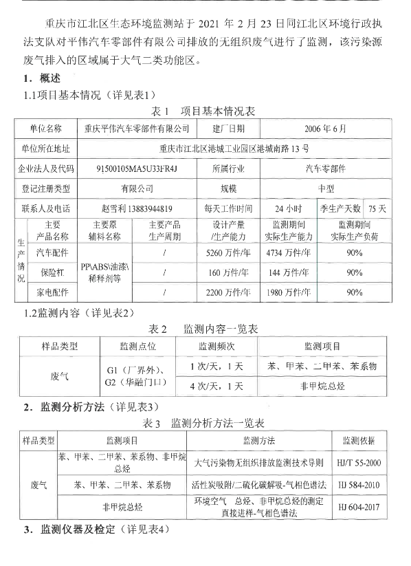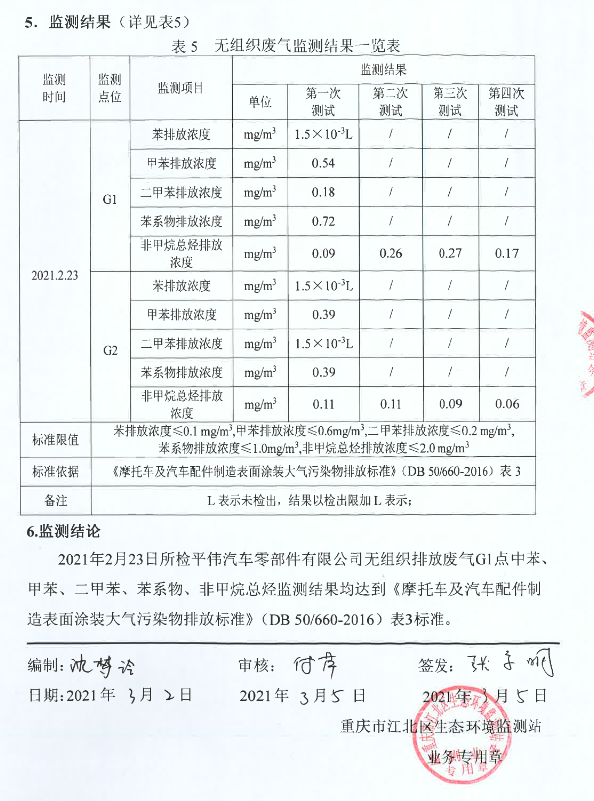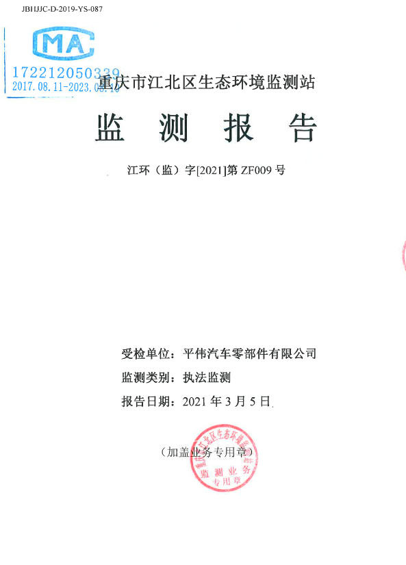 江環(huán)(監(jiān))字[2021]第ZF009號(氣)重慶平偉汽車零部件有限公司