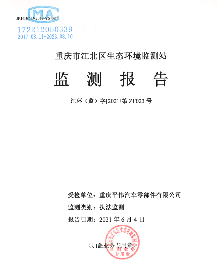 江環(監)字[2021]第ZF023號(氣)重慶平偉汽車零部件有限公司