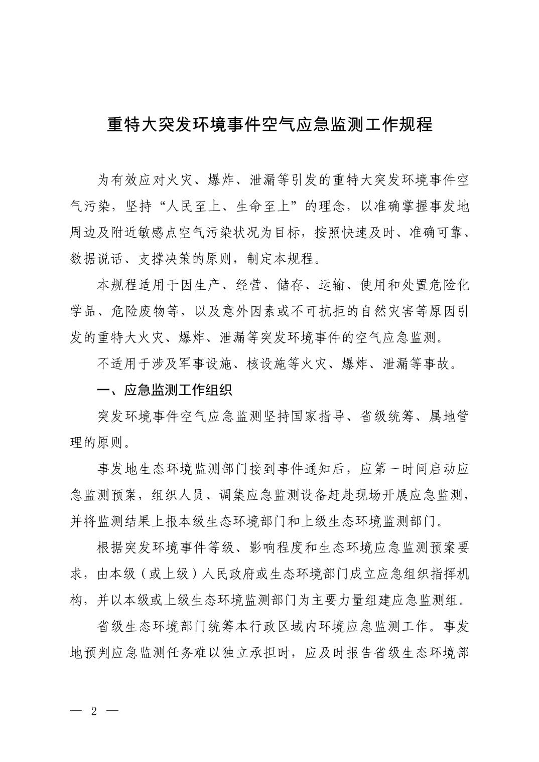 重特大突發環境事件空氣應急監測工作規程