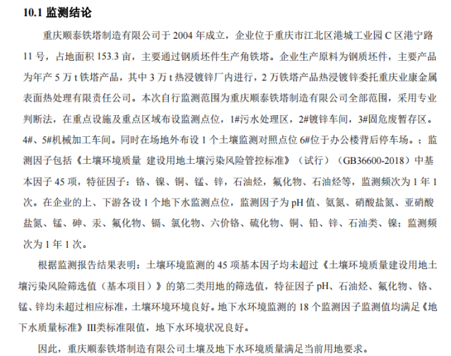 綜上所述,本次自行監(jiān)測(cè)結(jié)果表明目前場(chǎng)地土壤和地下水環(huán)境質(zhì)量處于正常水平,暫時(shí)不存在污染跡象。初步判斷該公司土壤和地下水環(huán)境處于正常水平。