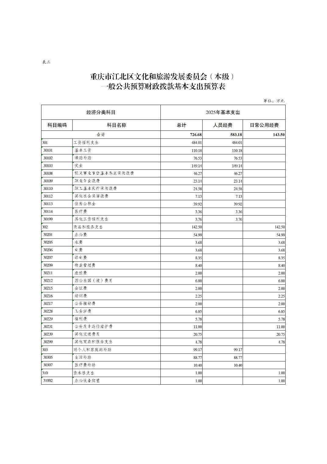 重慶市江北區文化和旅游發展委員會(本級)2025年單位預算情況說明