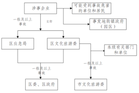 (3)及時(shí)向區(qū)政府、市文化旅游委報(bào)告本單位管理范圍內(nèi)發(fā)生的突發(fā)事件(故),配合區(qū)政府、市文化旅游委在本單位管理范圍內(nèi)發(fā)生的較大、重大、特別重大突發(fā)事件(故)的處置工作;