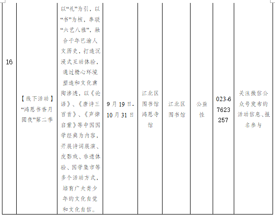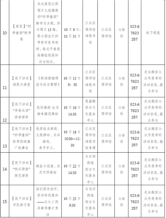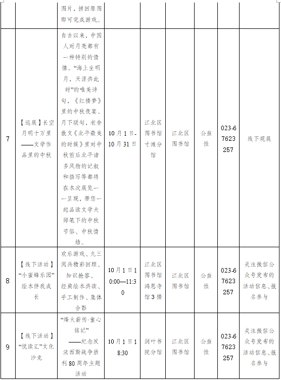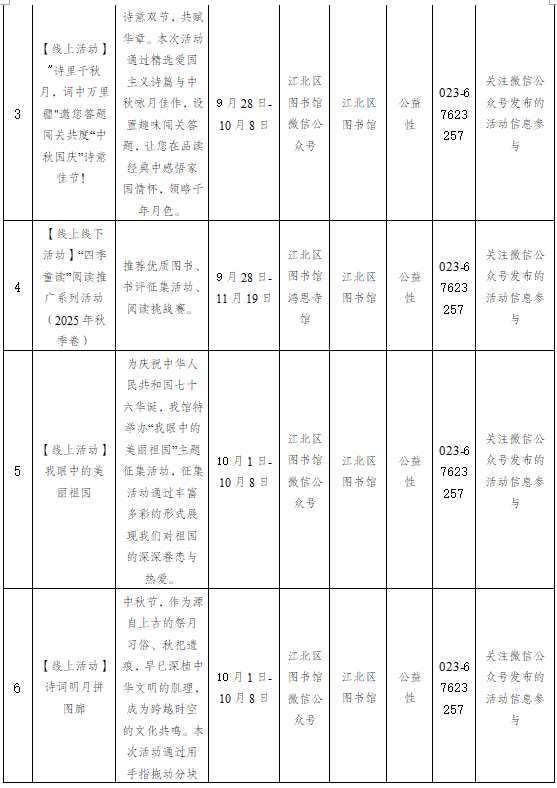 重慶市江北區2025年10月1日-10月31日主要群文活動預告