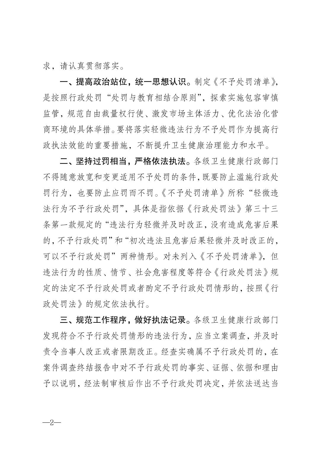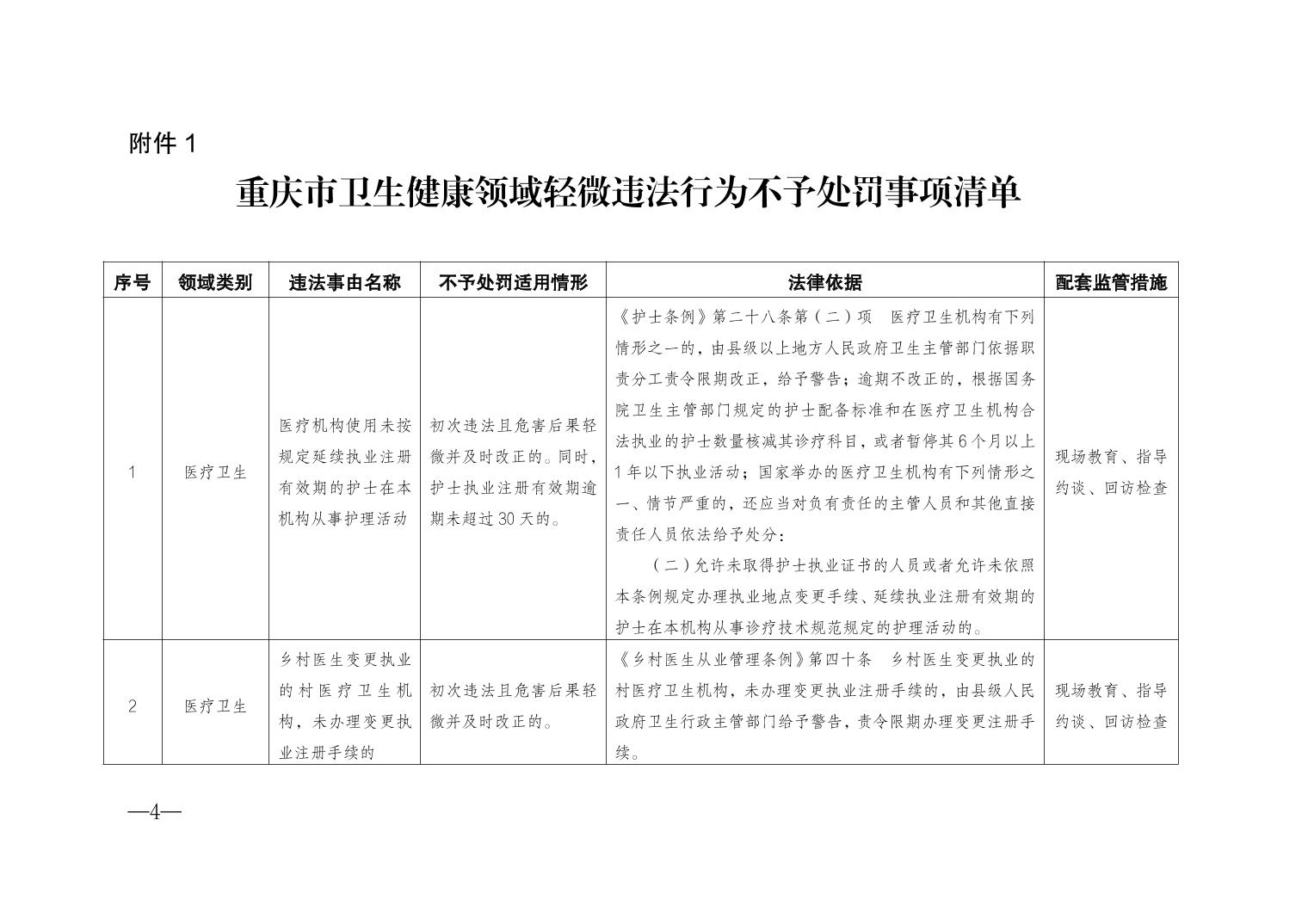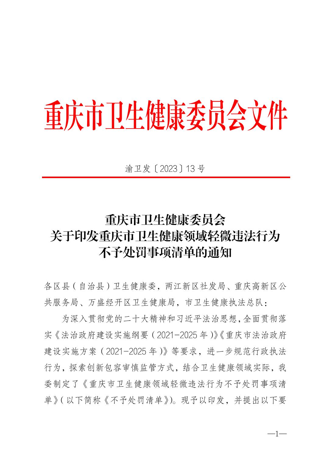 重慶市衛(wèi)生健康委員會關(guān)于印發(fā)重慶市衛(wèi)生健康領(lǐng)域輕微違法行為不予處罰事項清單的通知