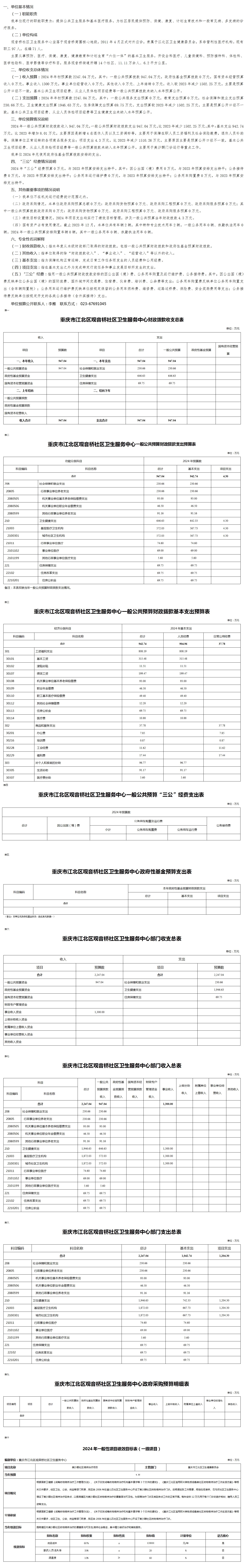 重慶市江北區觀音橋社區衛生服務中心2024年部門預算情況說明