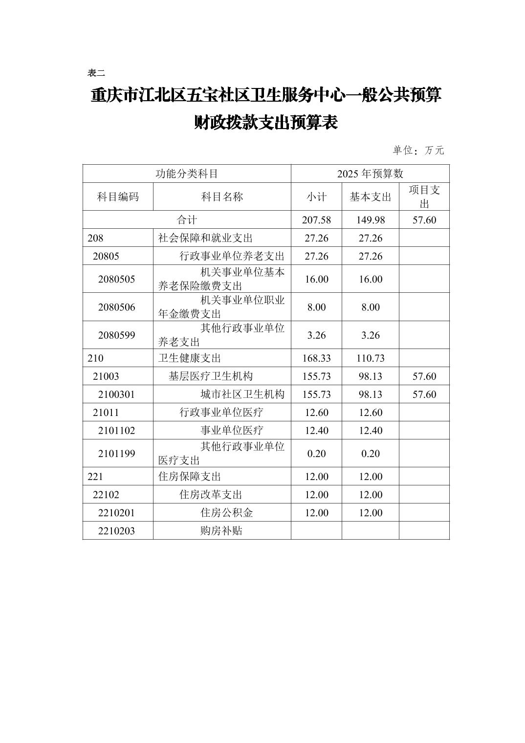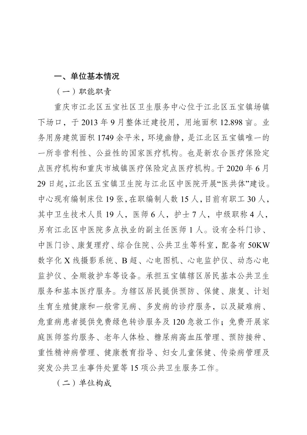 重慶市江北區五寶社區衛生服務中心(江北區五寶鎮衛生院)2025年單位預算情況說明