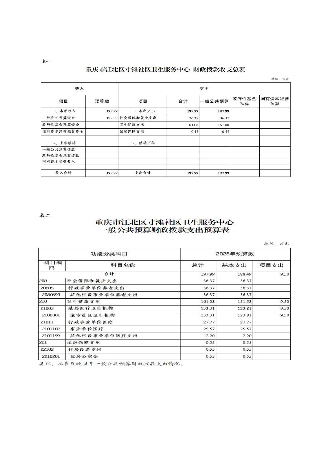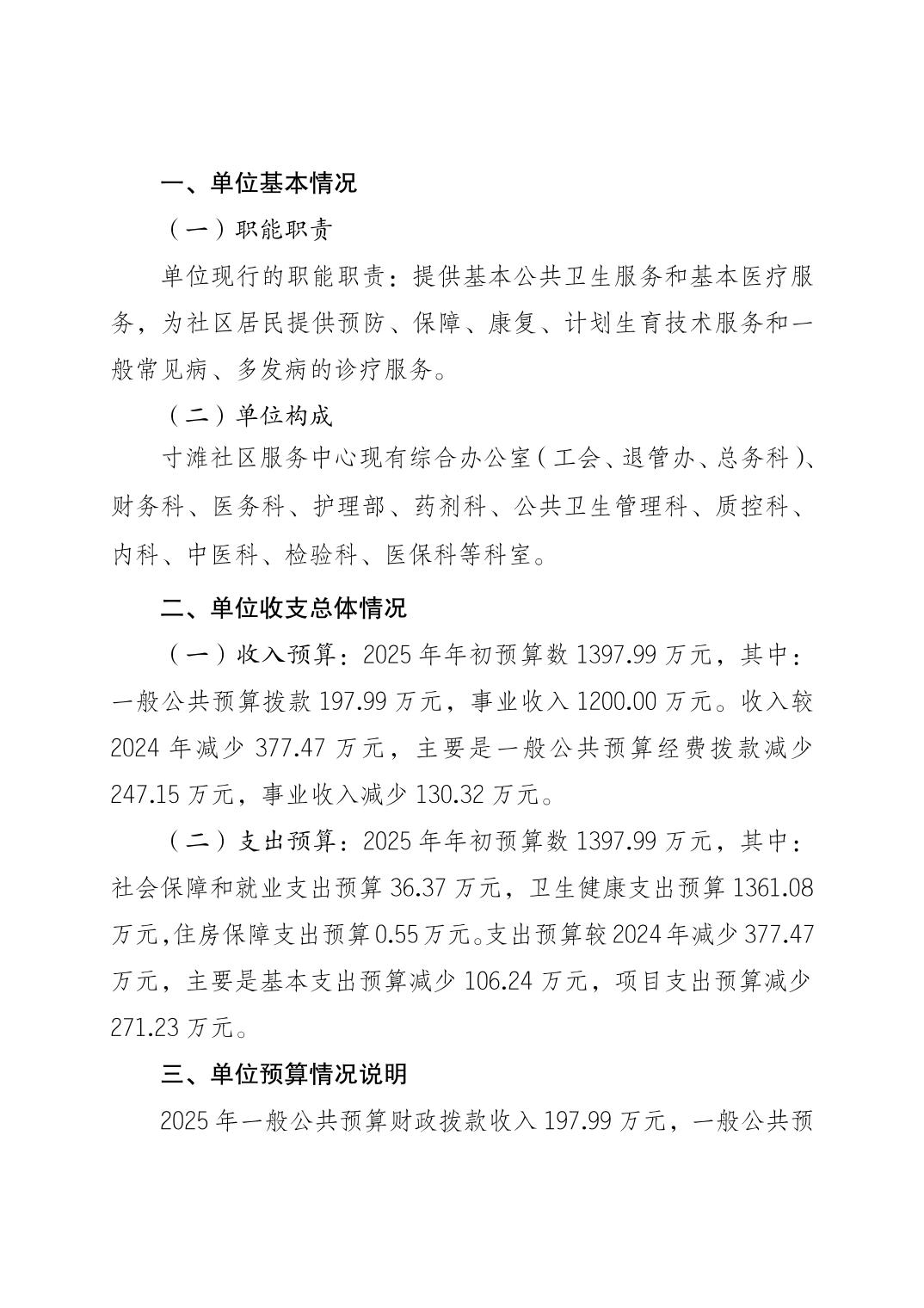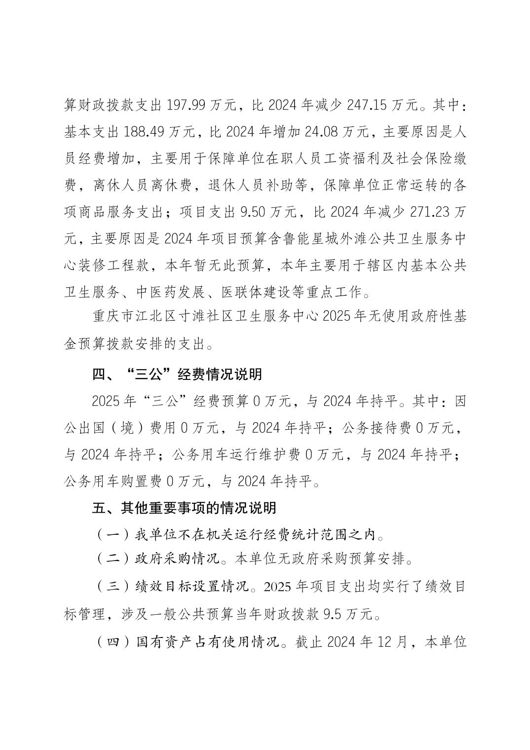 重慶市江北區(qū)寸灘社區(qū)衛(wèi)生服務(wù)中心2025年度單位預(yù)算情況說明