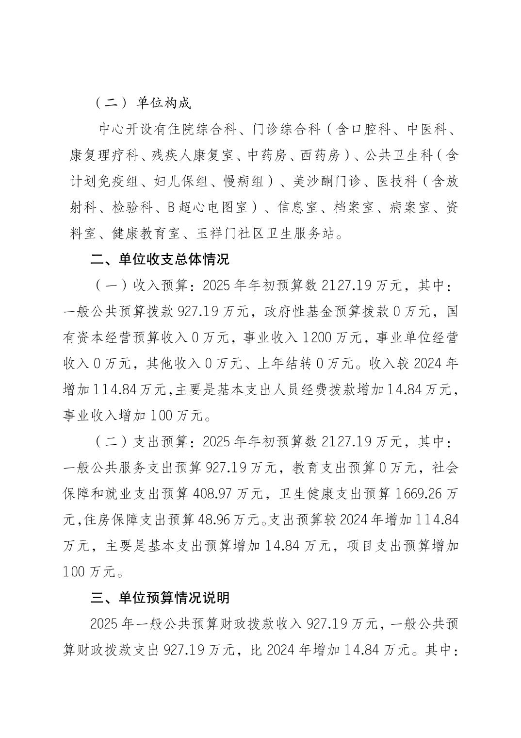 重慶市江北區石馬河社區衛生服務中心2025年度單位預算情況說明