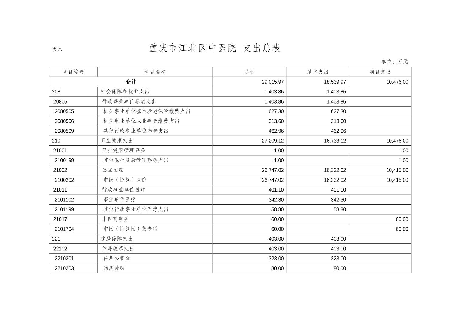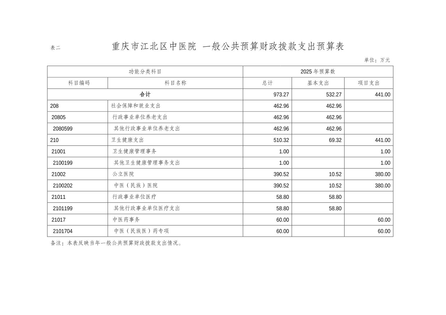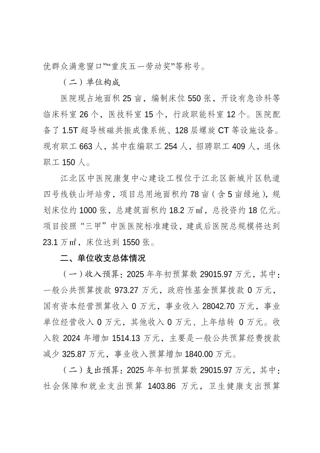 重慶市江北區中醫院2025年度單位預算情況說明