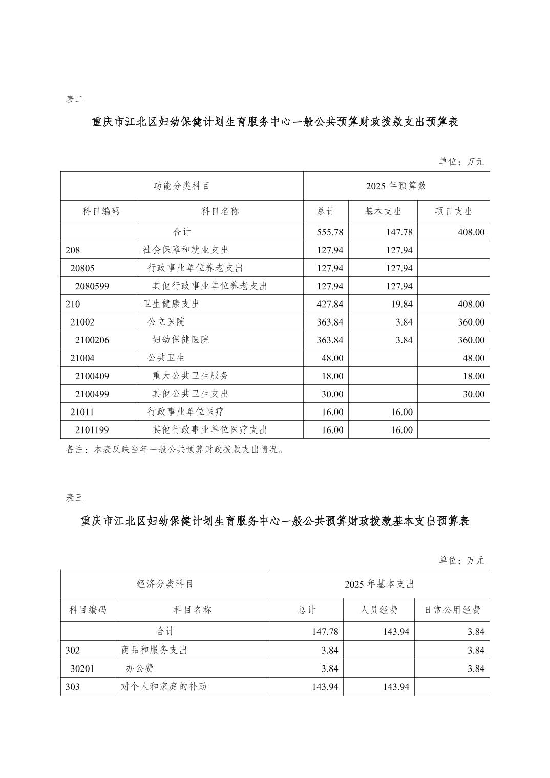 重慶市江北區婦幼保健計劃生育服務中心2025年單位預算情況說明